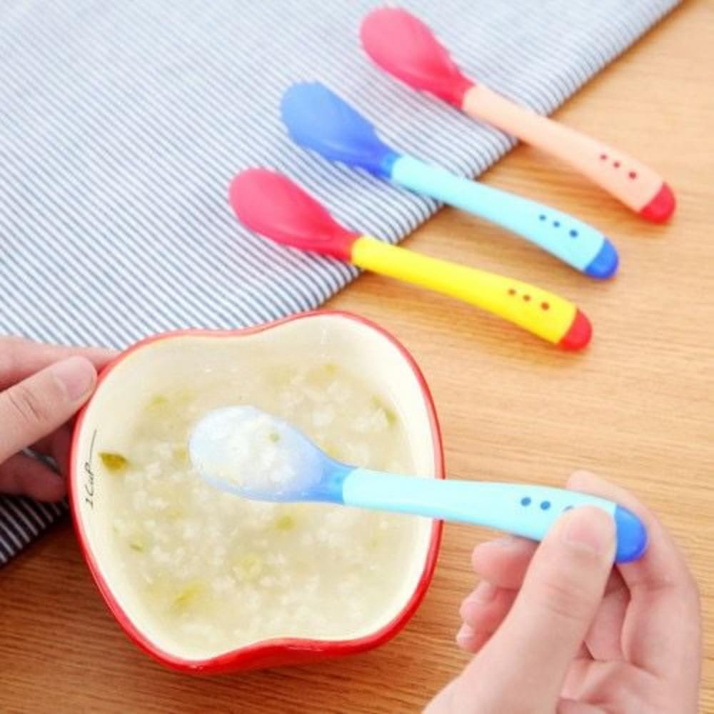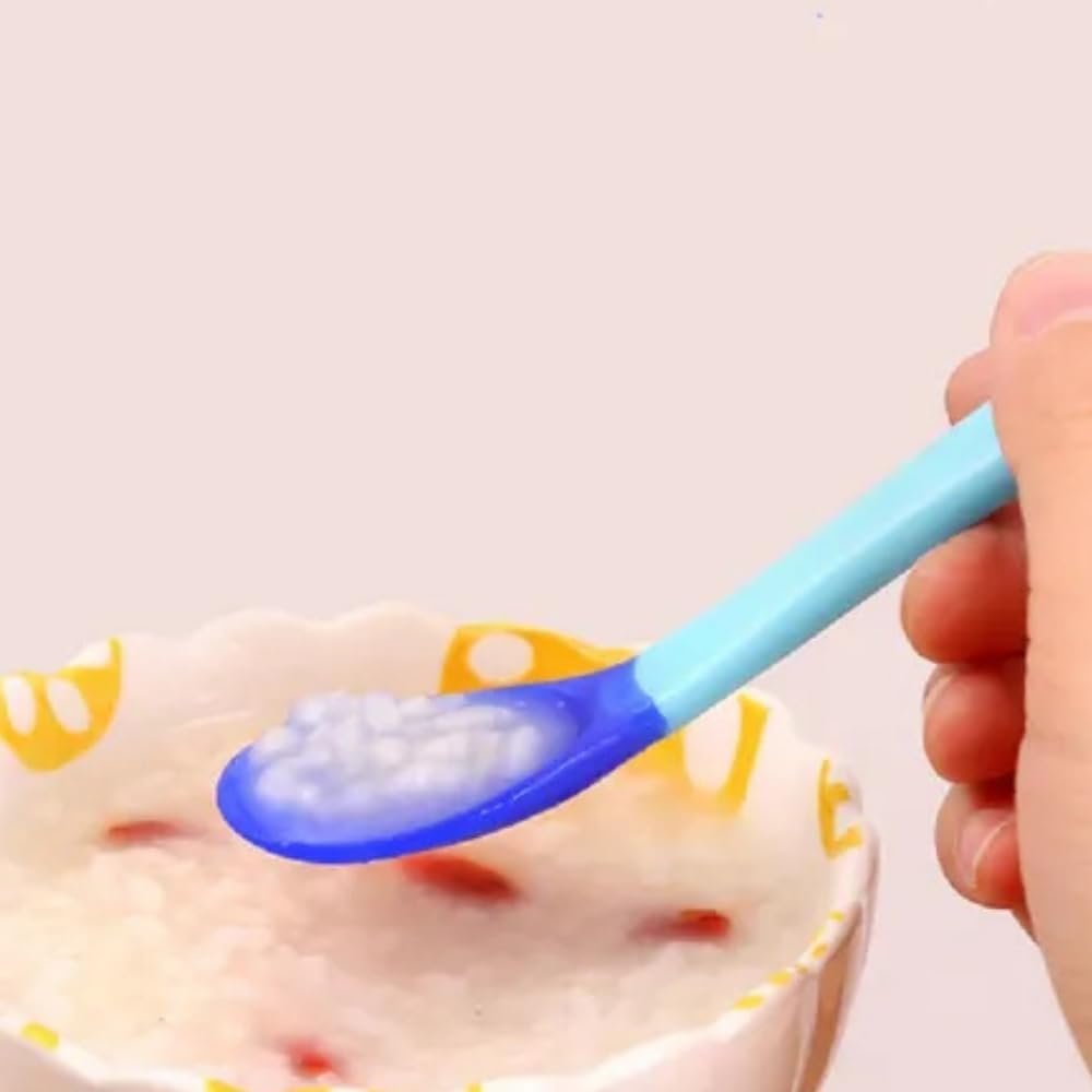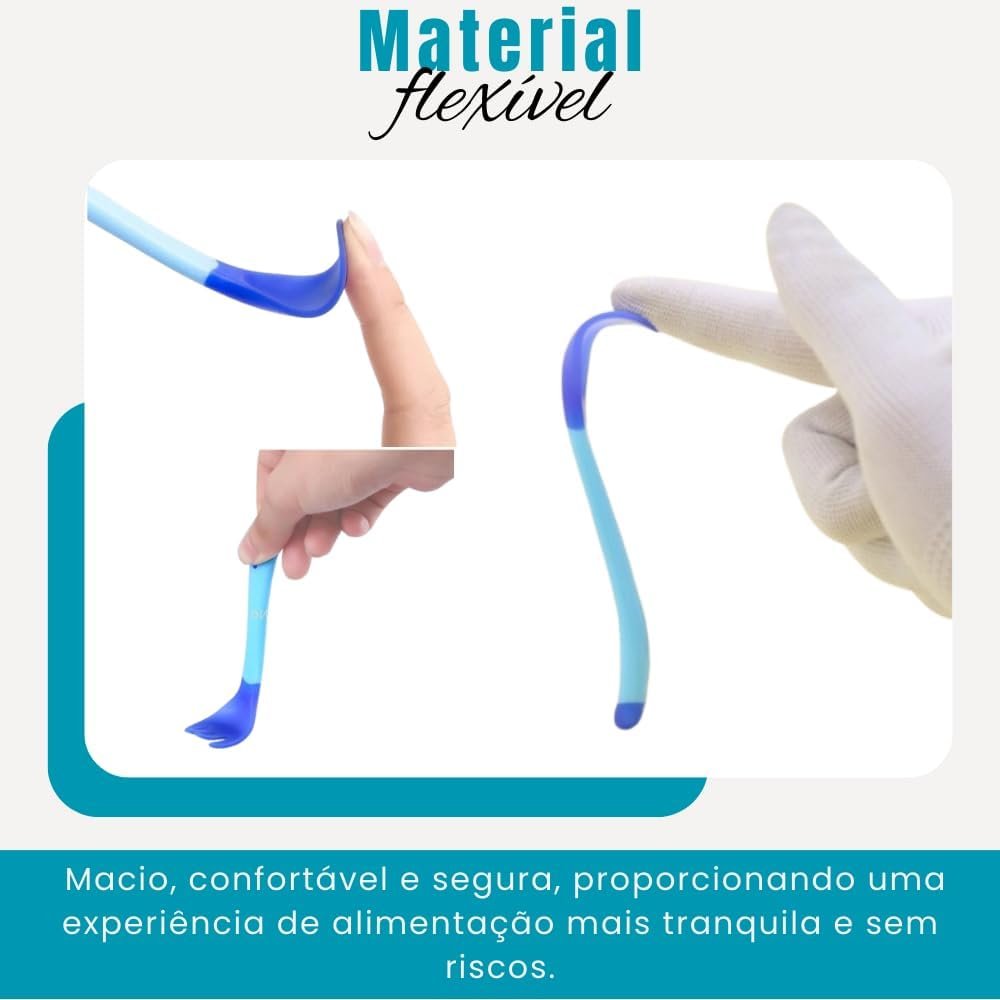 Jogo Colher e Garfo Infantil Termossensível para Bebê – Talheres Infantis de Silicone que Muda de Cor com a Temperatura, Kit Introdução Alimentar Segura – Shop100 (Azul)