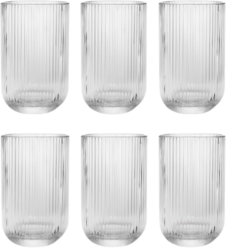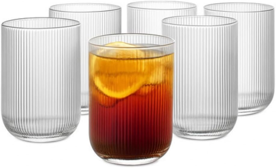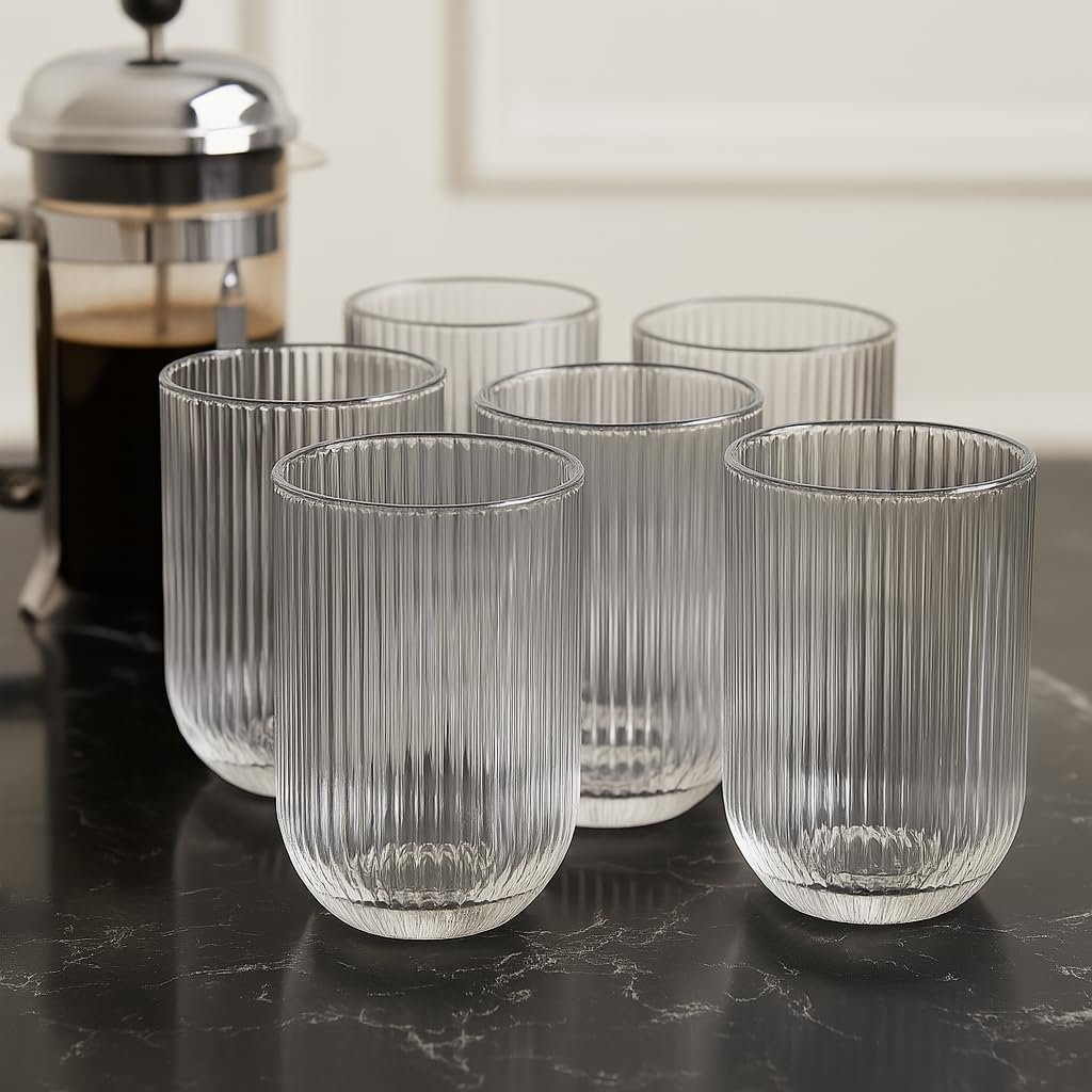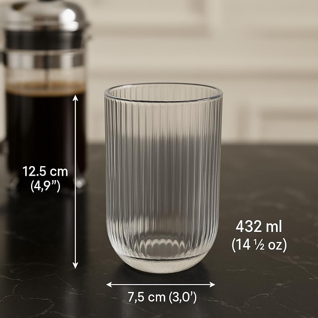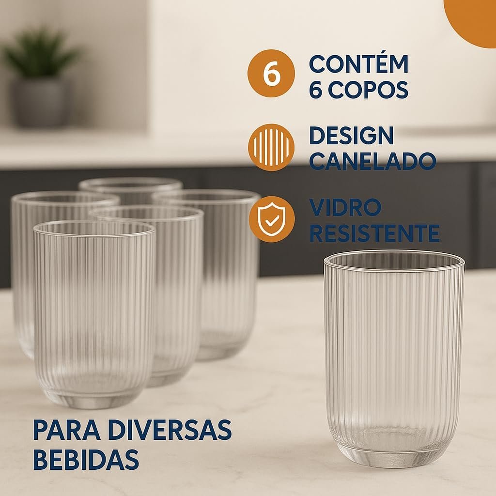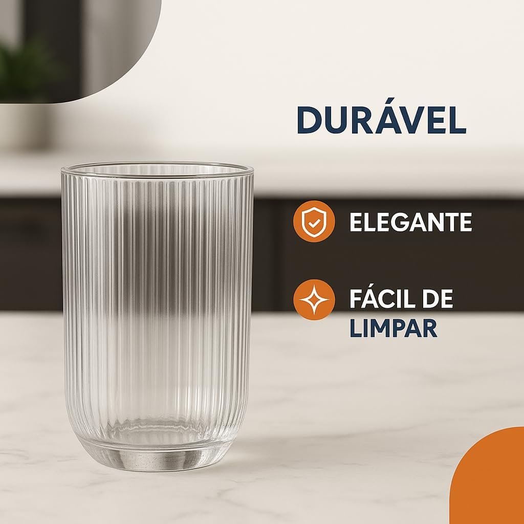 Jogo com 6 Copos de Vidro Canelado 423ml Design Elegante e Resistente Ideal para Suco Água Refrigerante Drinks e Café Transparente para Cozinha Bar e Restaurante