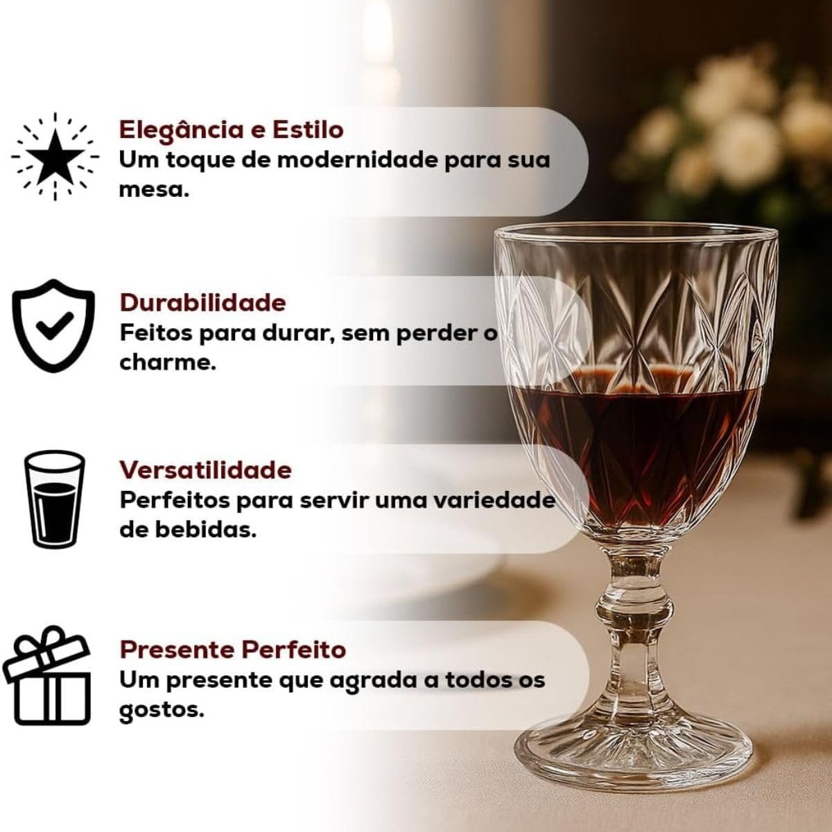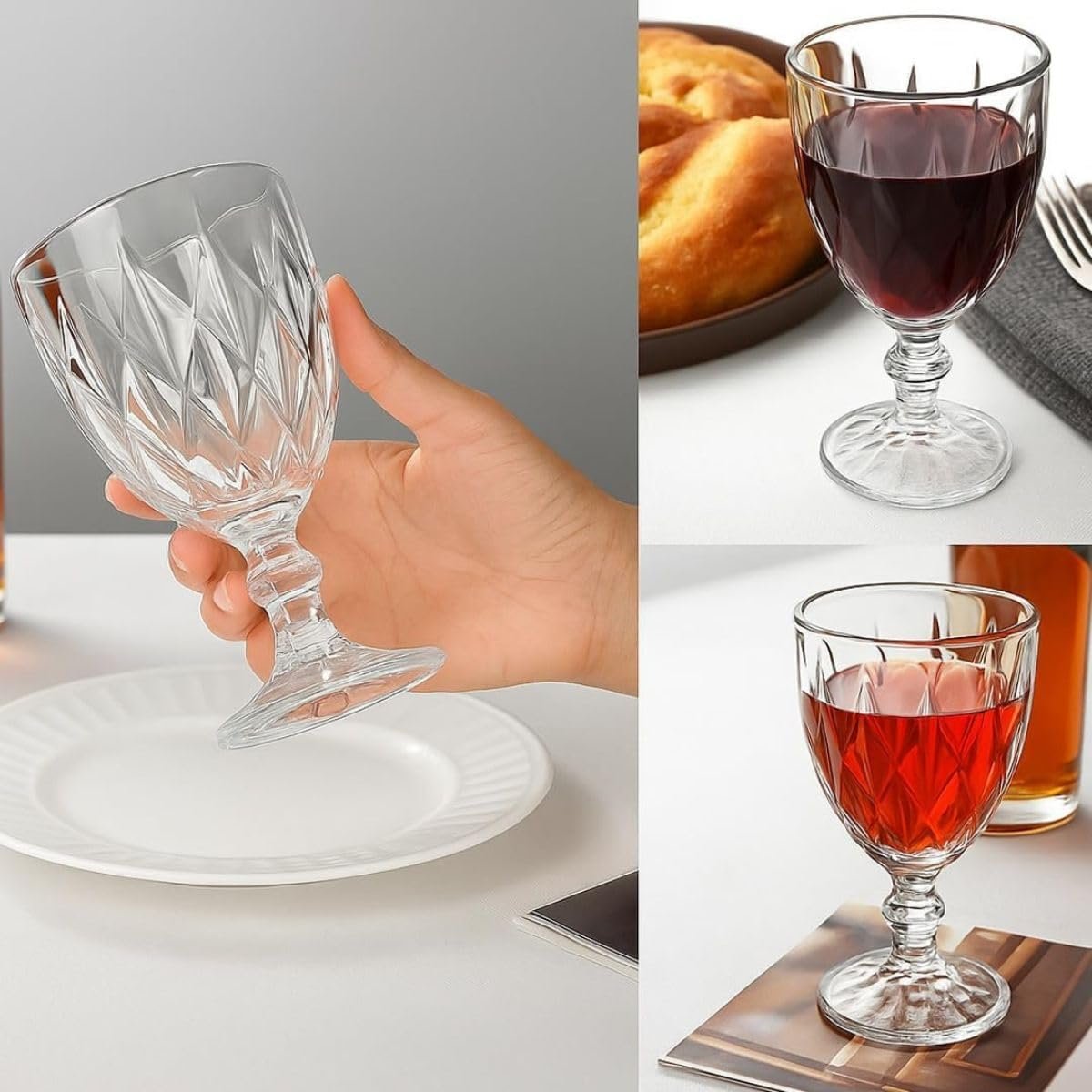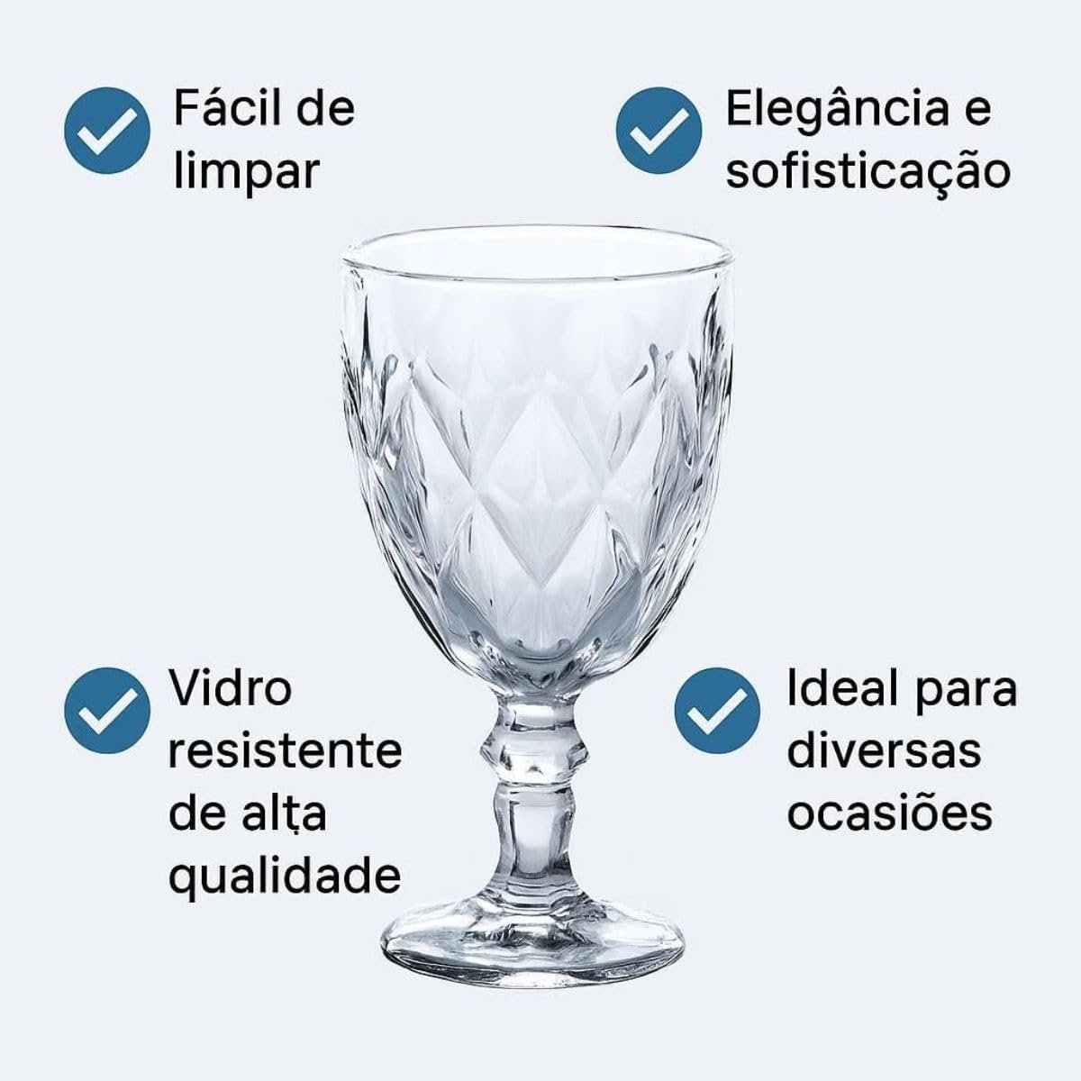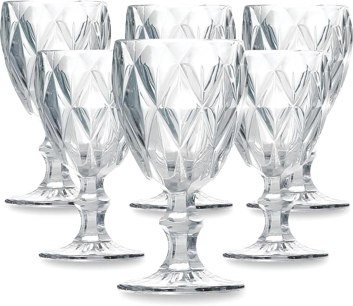 Jogo de 6 Taças de Vidro Diamond Transparente 315ml Design Elegante e Resistente Ideal para Suco Água Refrigerante Drinks e Café Transparente para Cozinha Bar e Restaurante