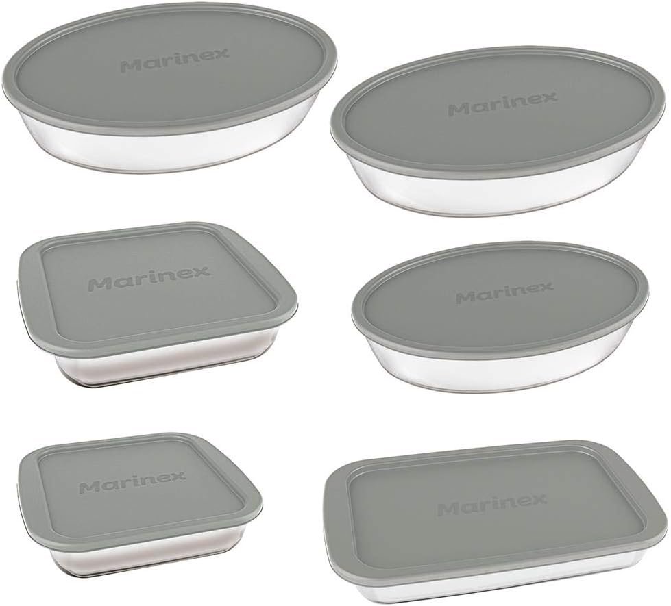 Jogo de Assadeiras Marinex, 6 Peças, Com Tampa, Vidro
