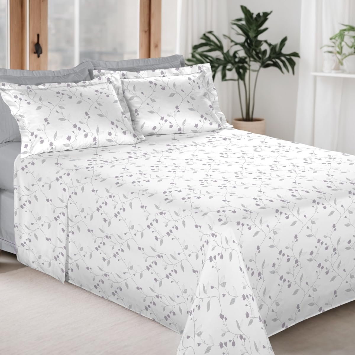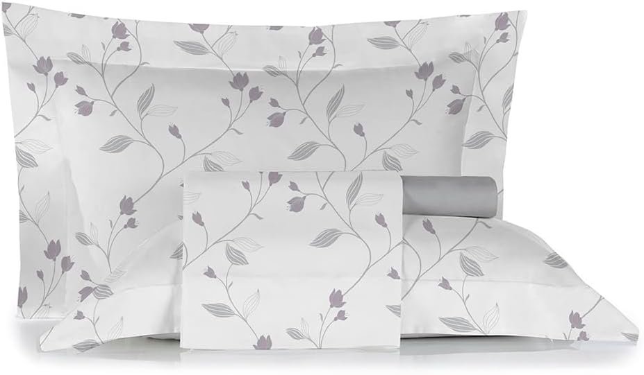 Jogo de Cama 100% Algodão 300 Fios Percal Lençol Antiácaro Respirável Toque Macio, 4 Peças – Bem Lunar (Cinza Folhagem, Casal)Jogo de Cama 100% Algodão 300 Fios Percal Lençol Antiácaro Respirável Toque Macio, 4 Peças – Bem Lunar (Cinza Folhagem, Casal)