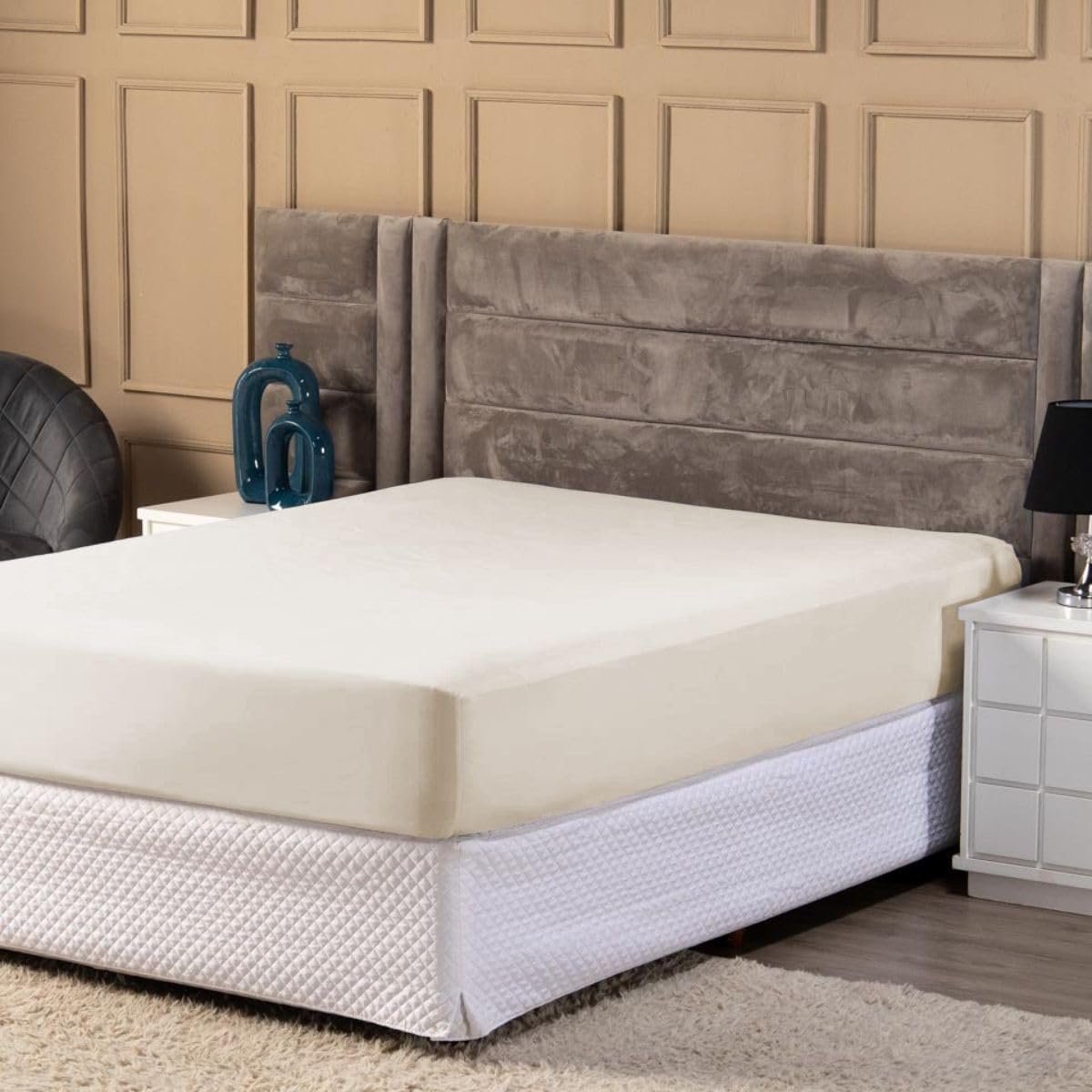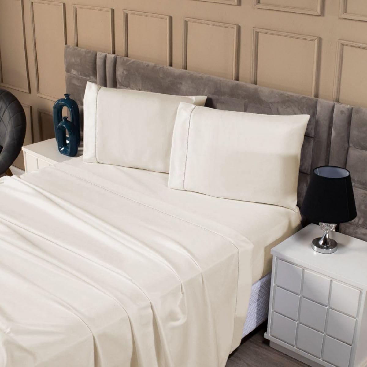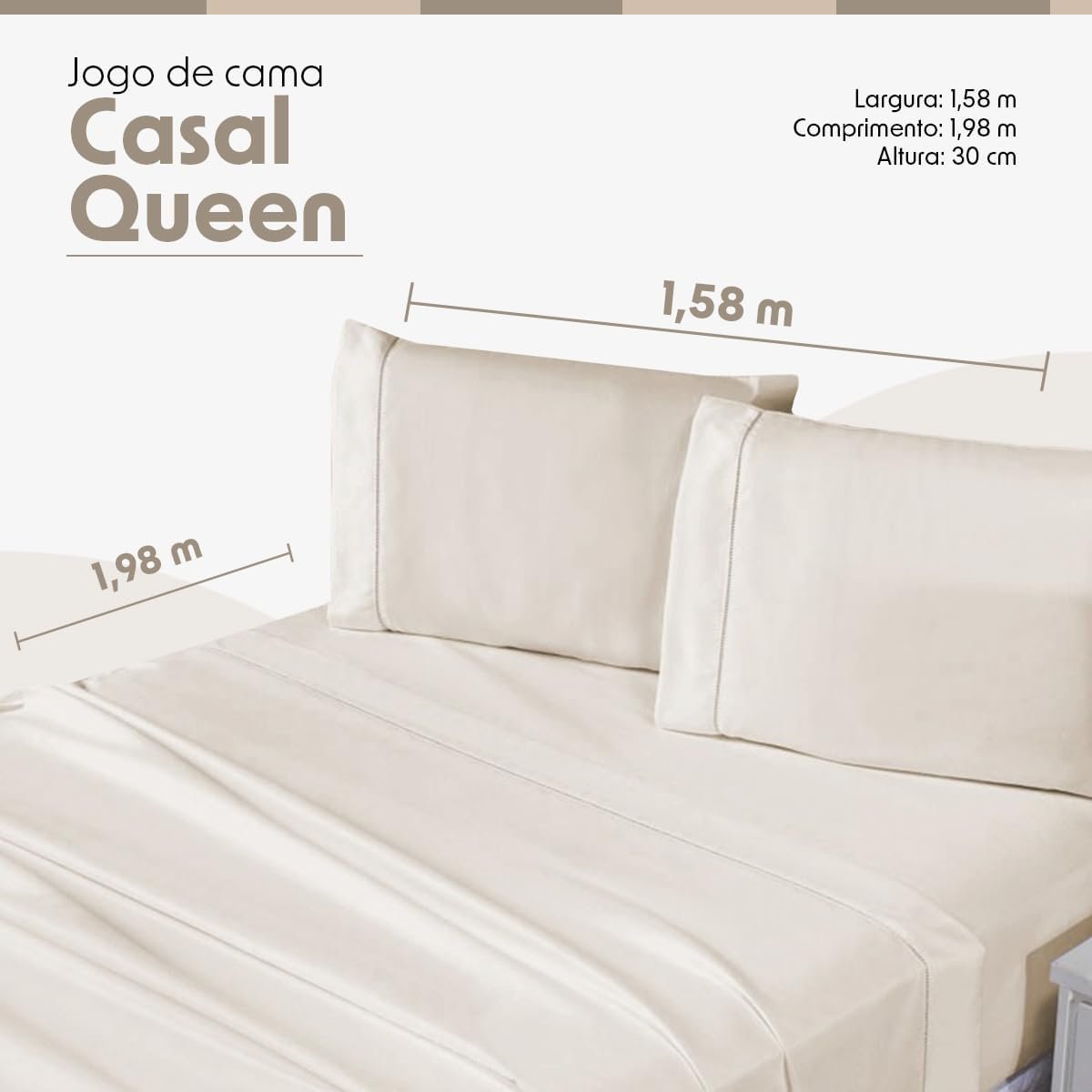 Jogo de Cama Casal Queen Percal 400 Fios Ponto Palito 04 Peças – Toque Extra Macio (Palha)
