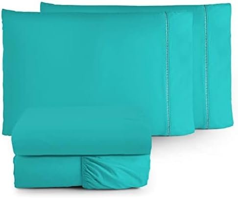 Jogo de Lençol 4 Peças com Ponto Palito 400 Fios Toque Macio (Verde Tiffany, Casal)