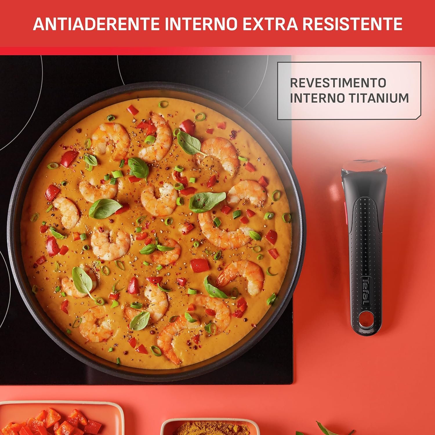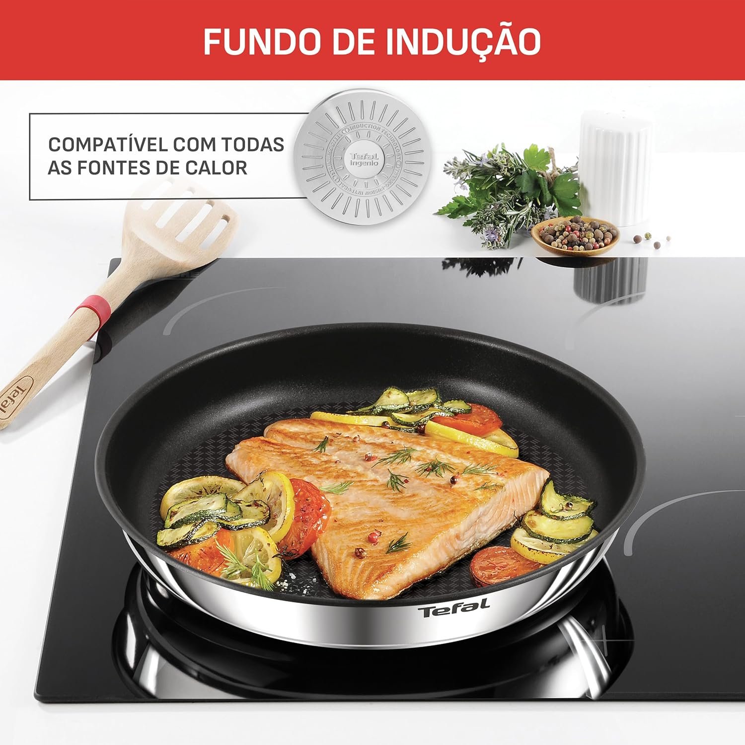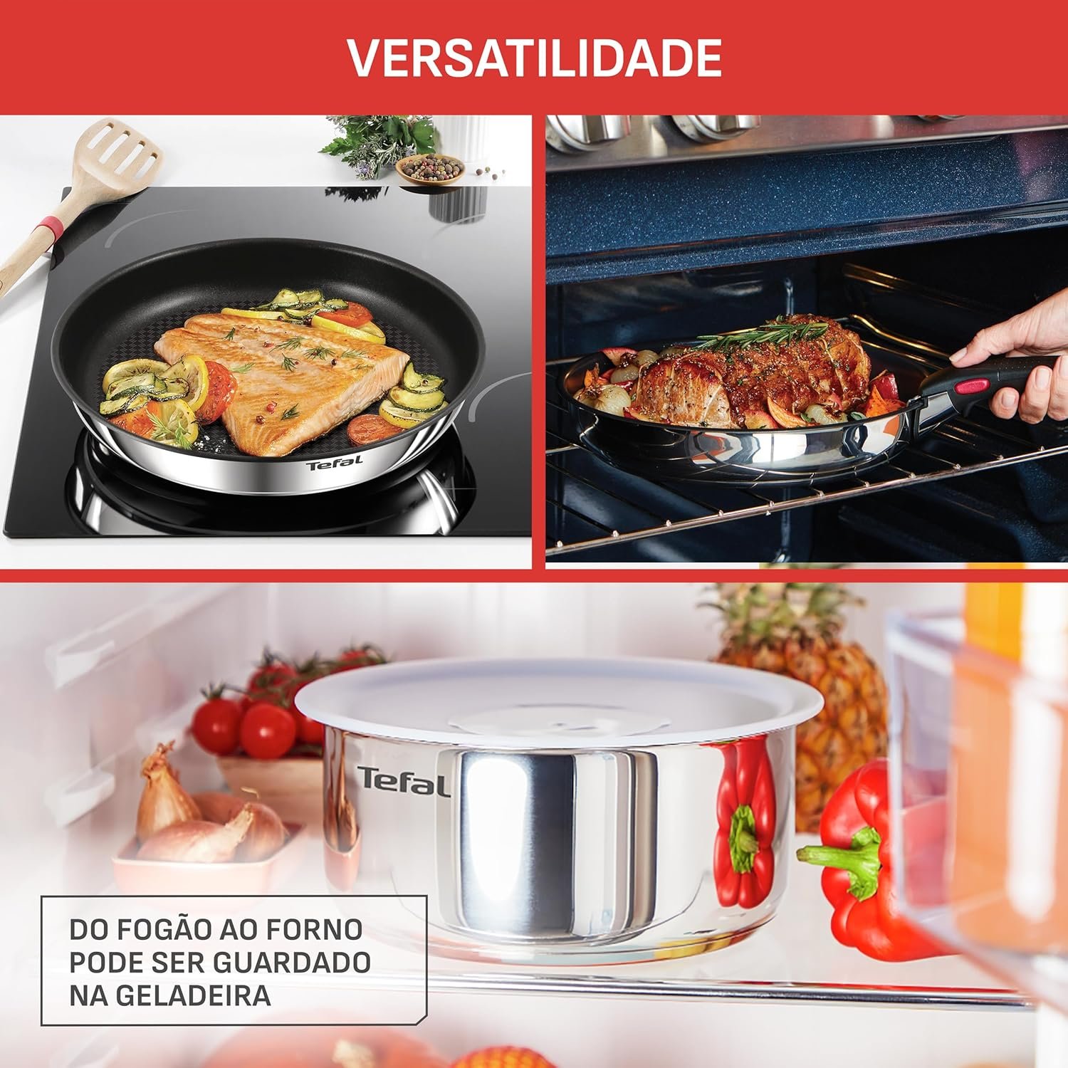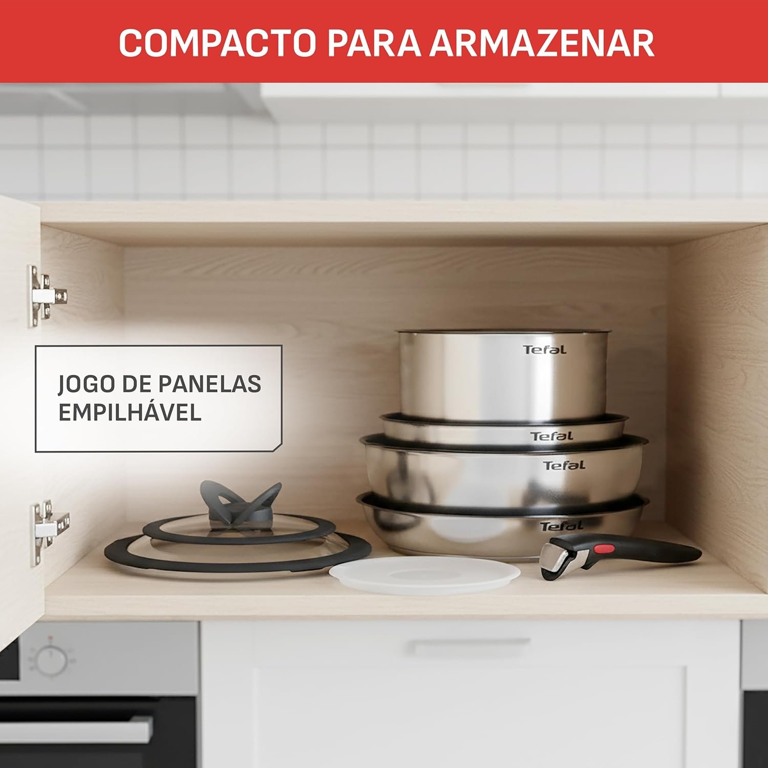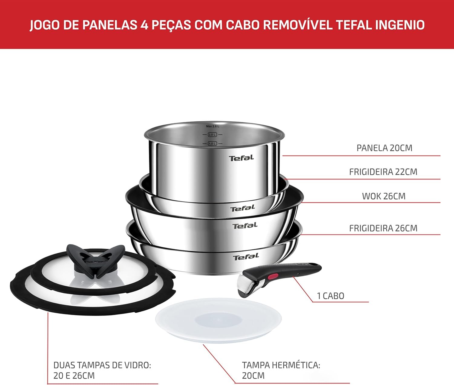 Jogo de Panelas Tefal Ingenio 4 peças Antiaderente Titanium, Thermo Sinal, cabo removível, uso no fogão/forno/geladeira, tampas retráteis e herméticas