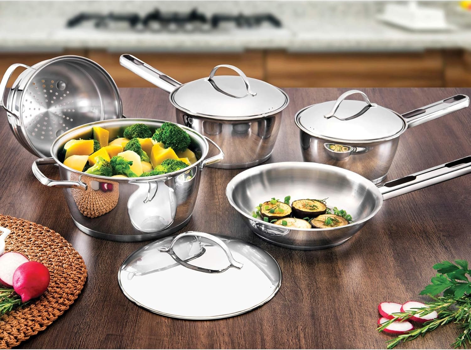 Jogo de Panelas Tramontina Aço Inox Allegra 5 Peças Fundo Triplo + Pegador de Massa