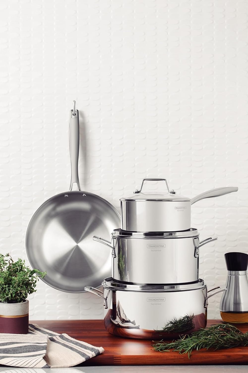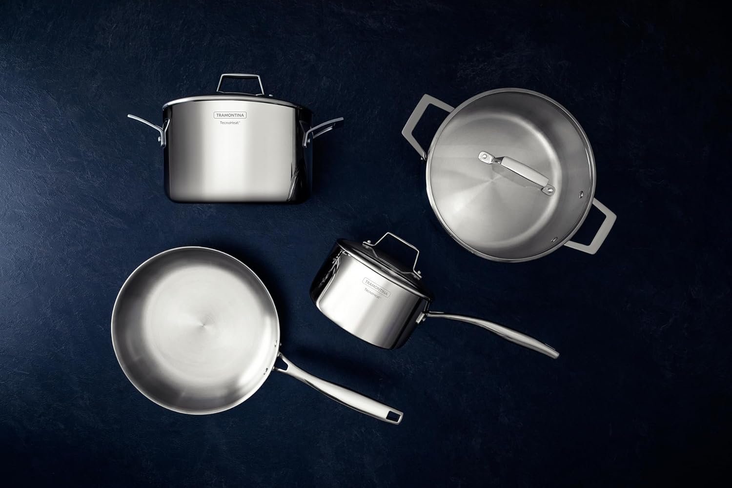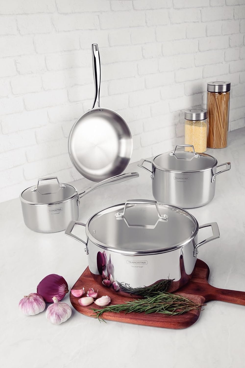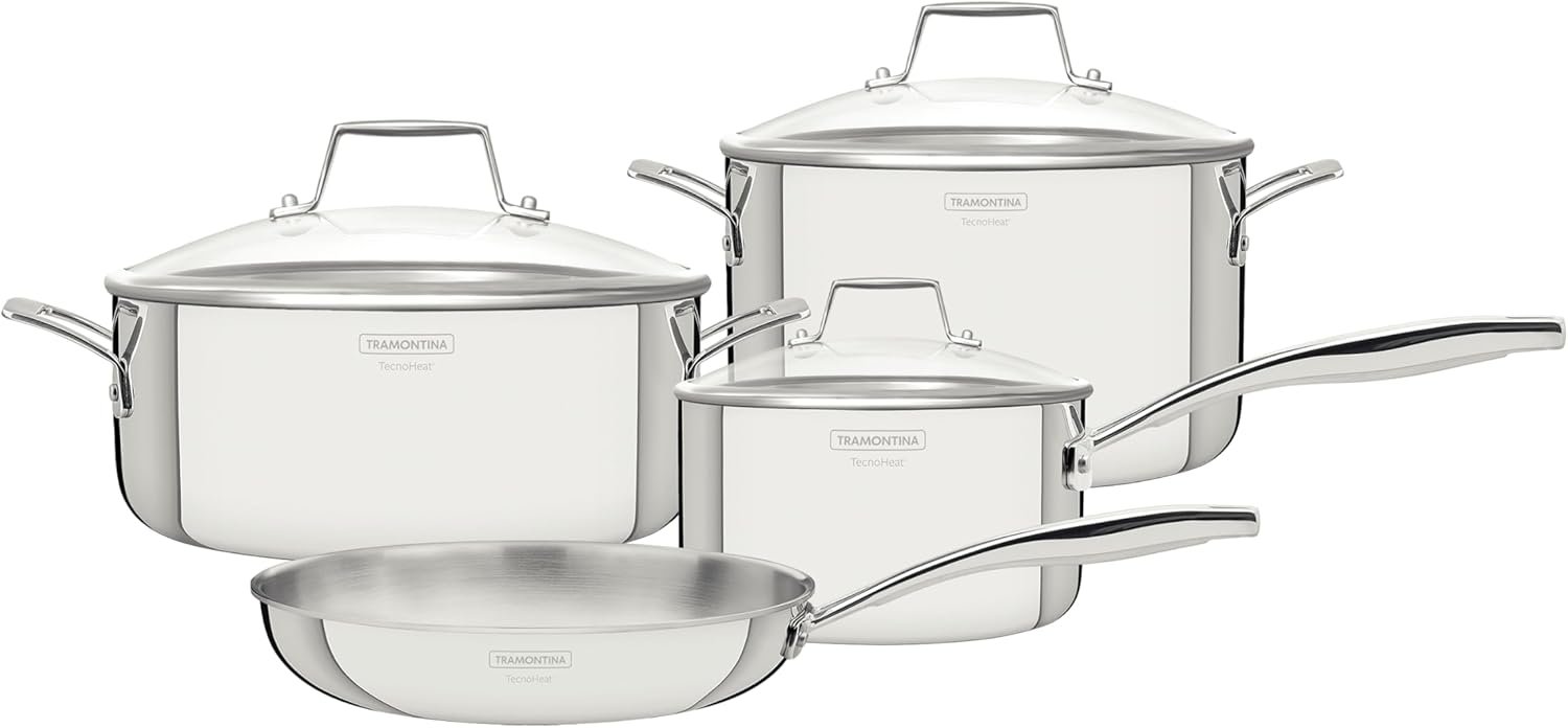 Jogo de Panelas Tramontina Grano Glass em Aço Inox com Corpo Triplo e Tampa de Vidro 4 Peças