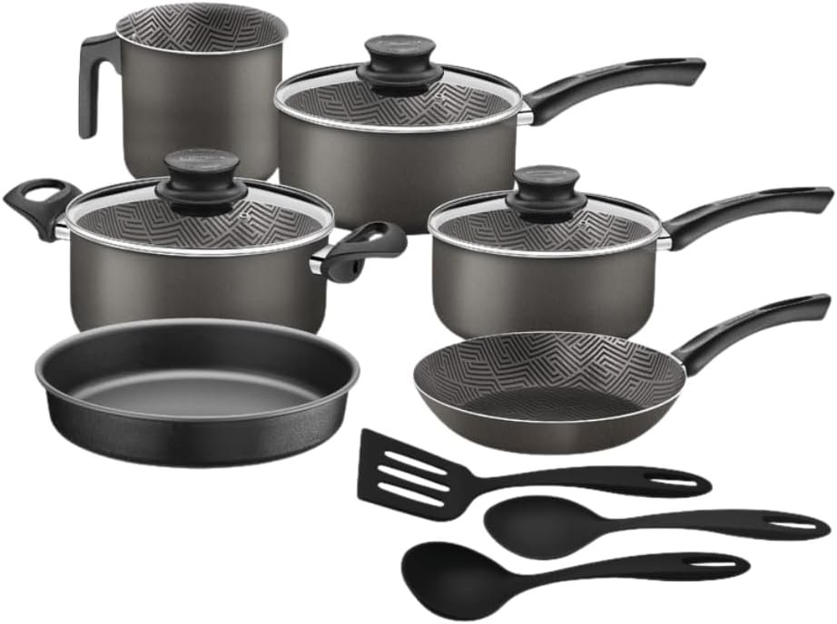 Jogo de Panelas Tramontina Paris em Alumínio com Revestimento Interno e Externo Antiaderente Starflon Max Chumbo 9 Peças