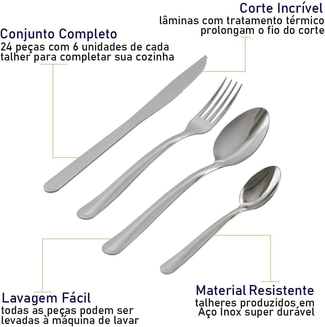 Jogo de Talheres Faqueiro Inox 24 Peças Búzios Tramontina