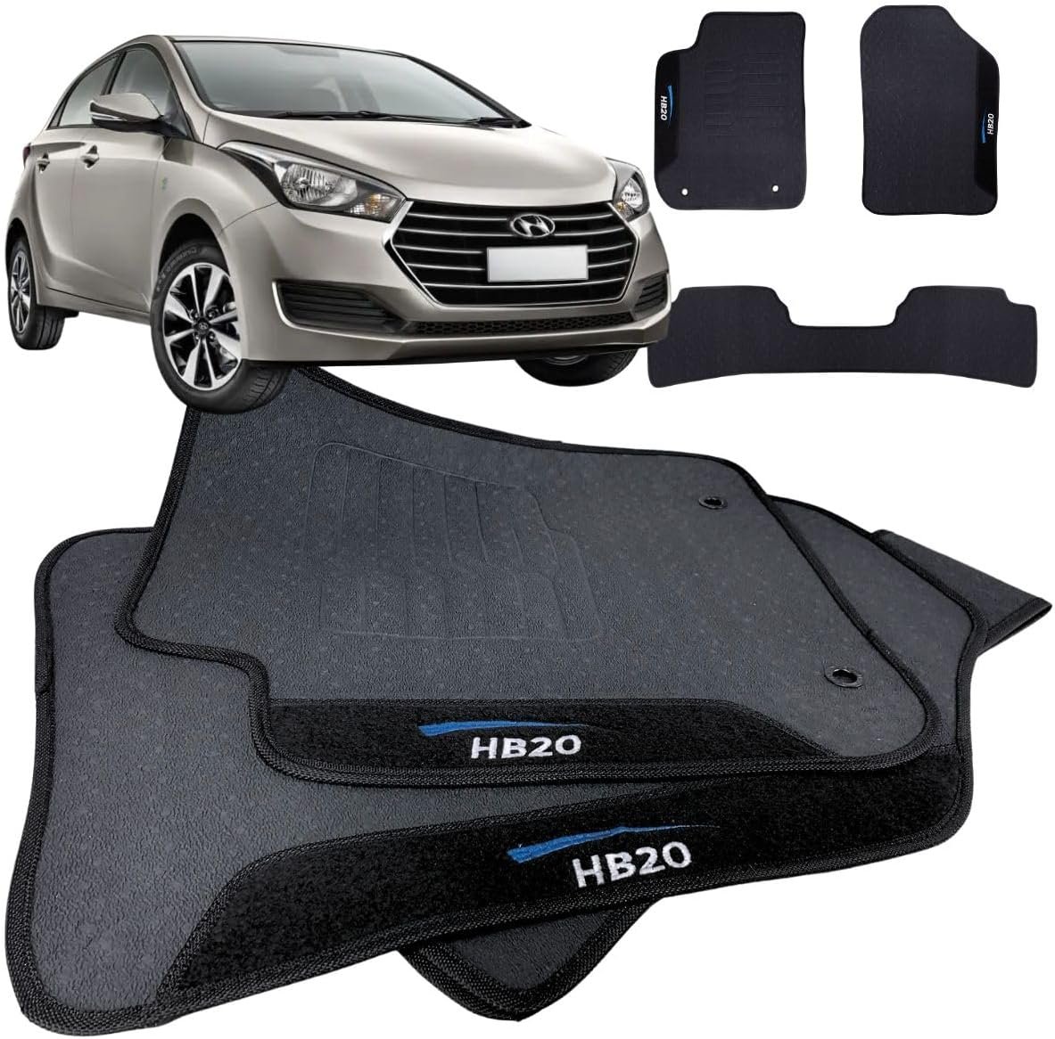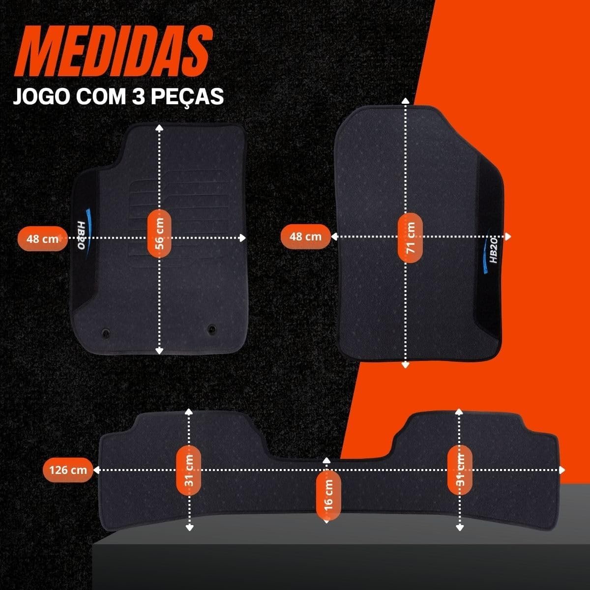 Jogo de Tapete Borracha Automotivo pra Carro Compatível com Hb20 2012 2013 2014 2015 2016 2017 2018 2019 Com Logo Bordado Impermeável Personalizado 3 Peças Traseira Interiça W8 Acessorios