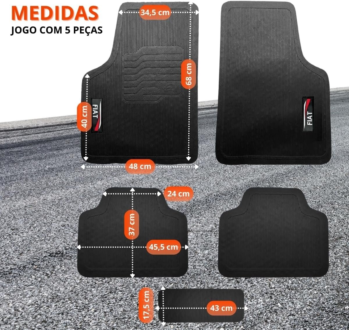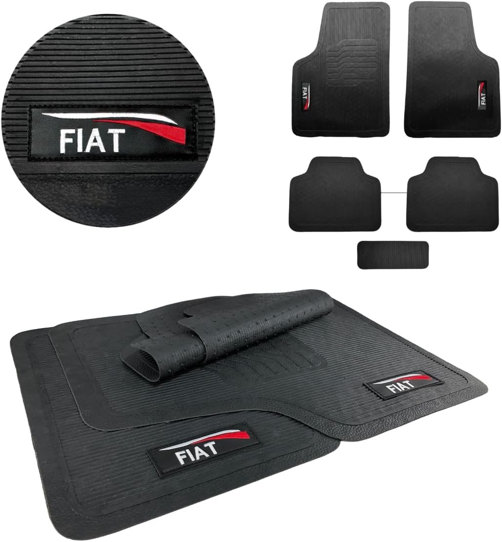 Jogo de Tapete Borracha Automotivo Universal Compativél para Uno Mile Way Argo Palio Fire Attractive Strada Working Trekking Toro Siena Mobi Idea Doblo 5 Peças Bordado Com Logo