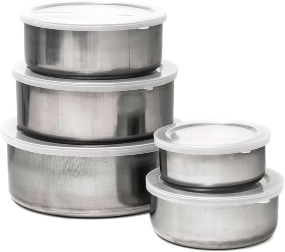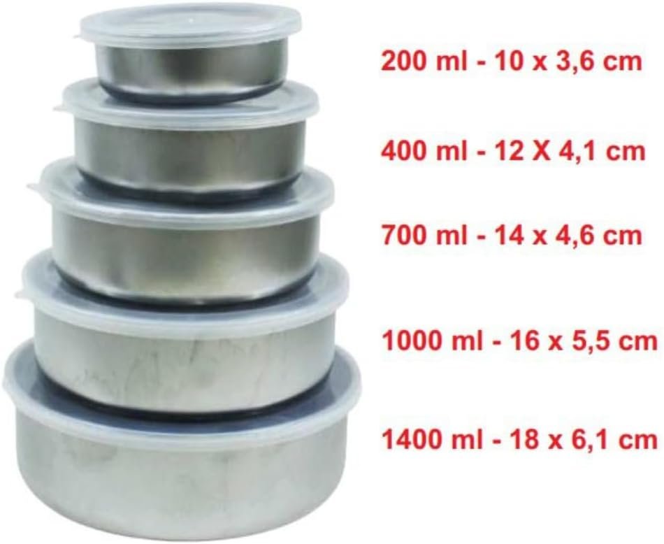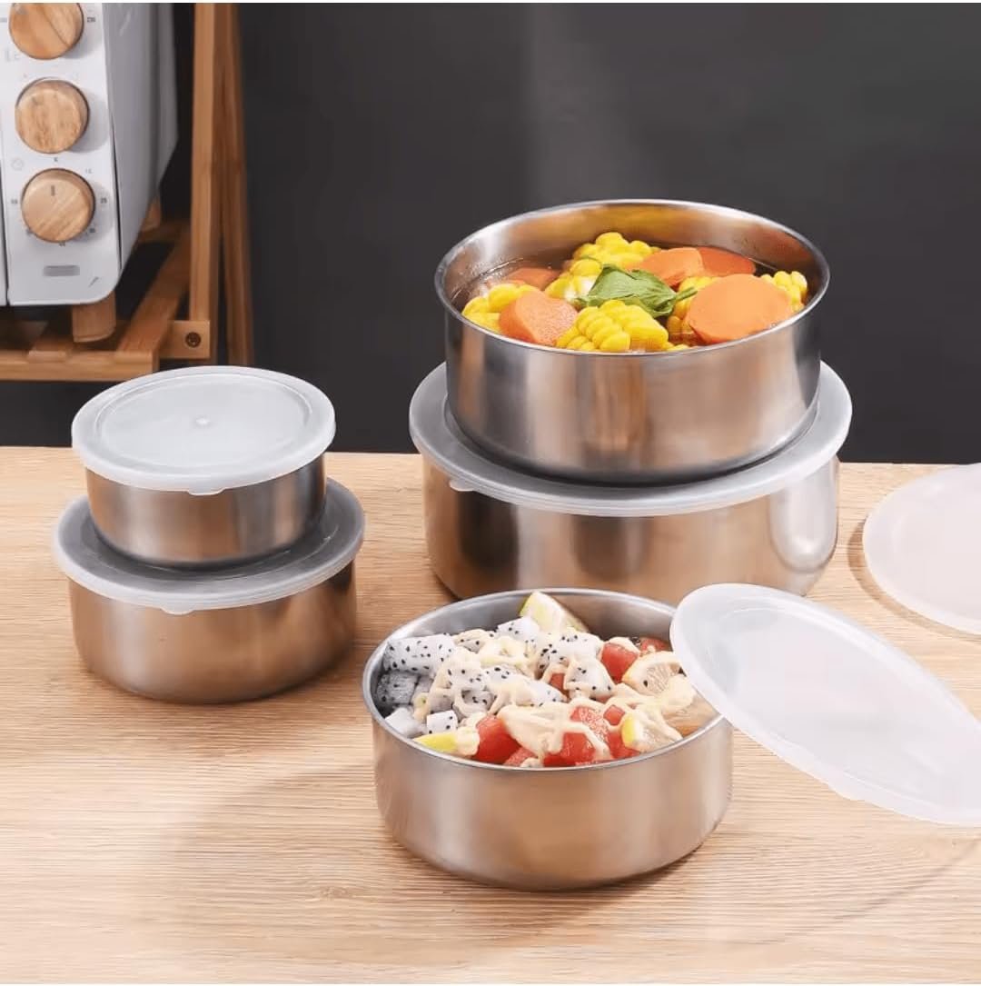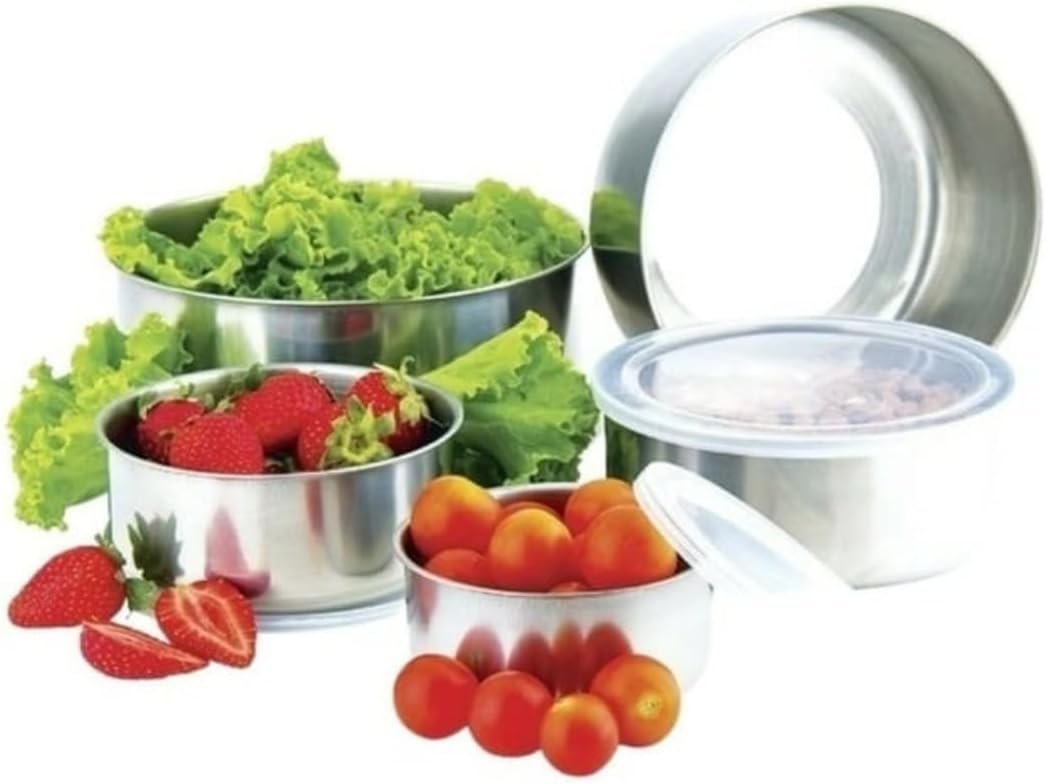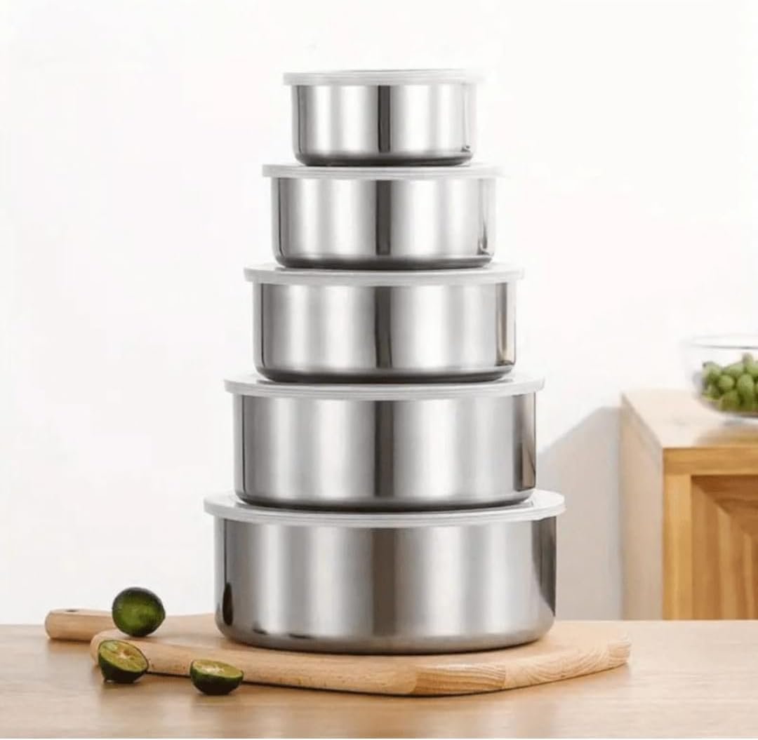 Jogo de Tigelas Aço Inox 5 Peças com Tampa – Design Moderno, Durável, Ideal para Cozinhar e Servir