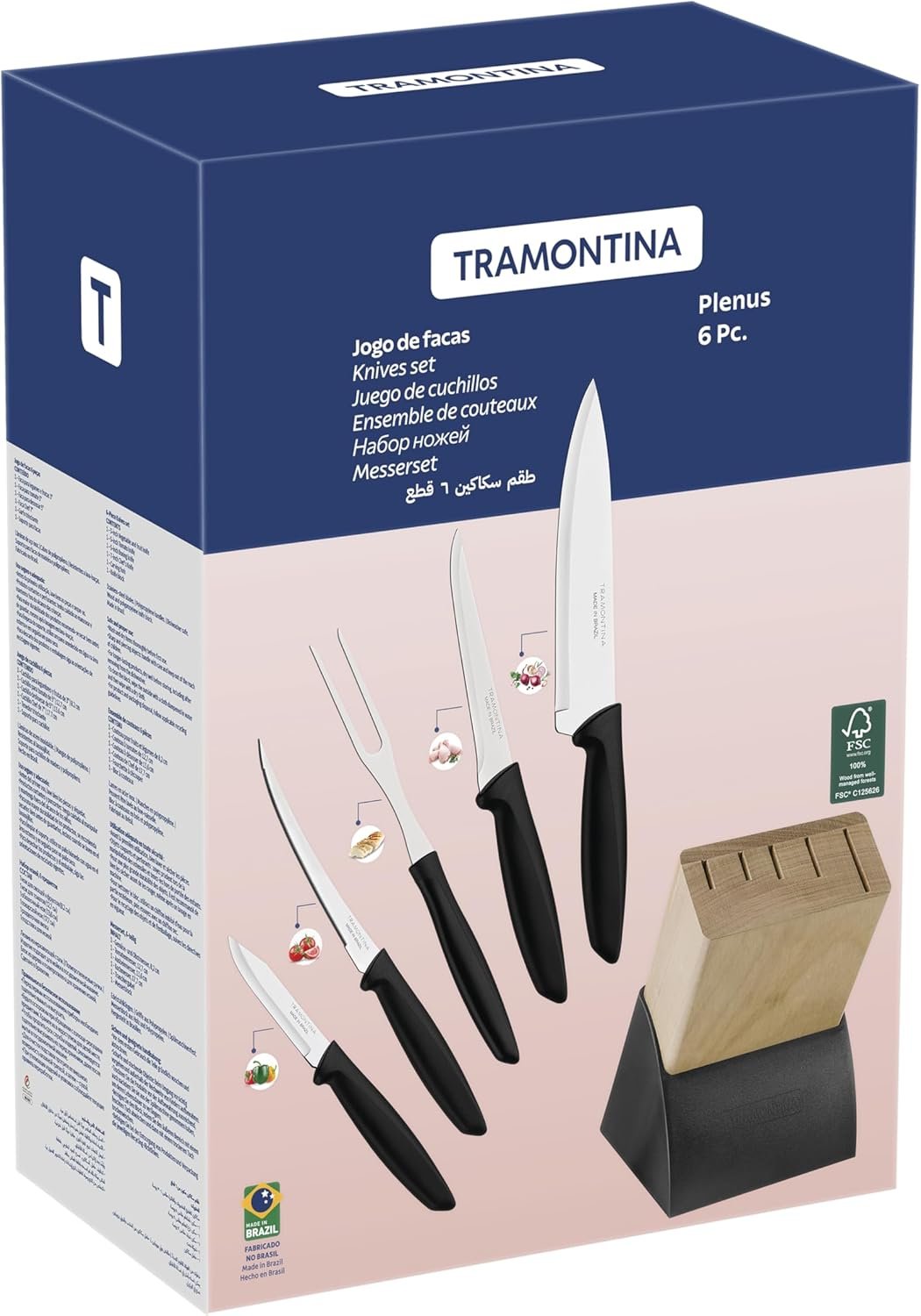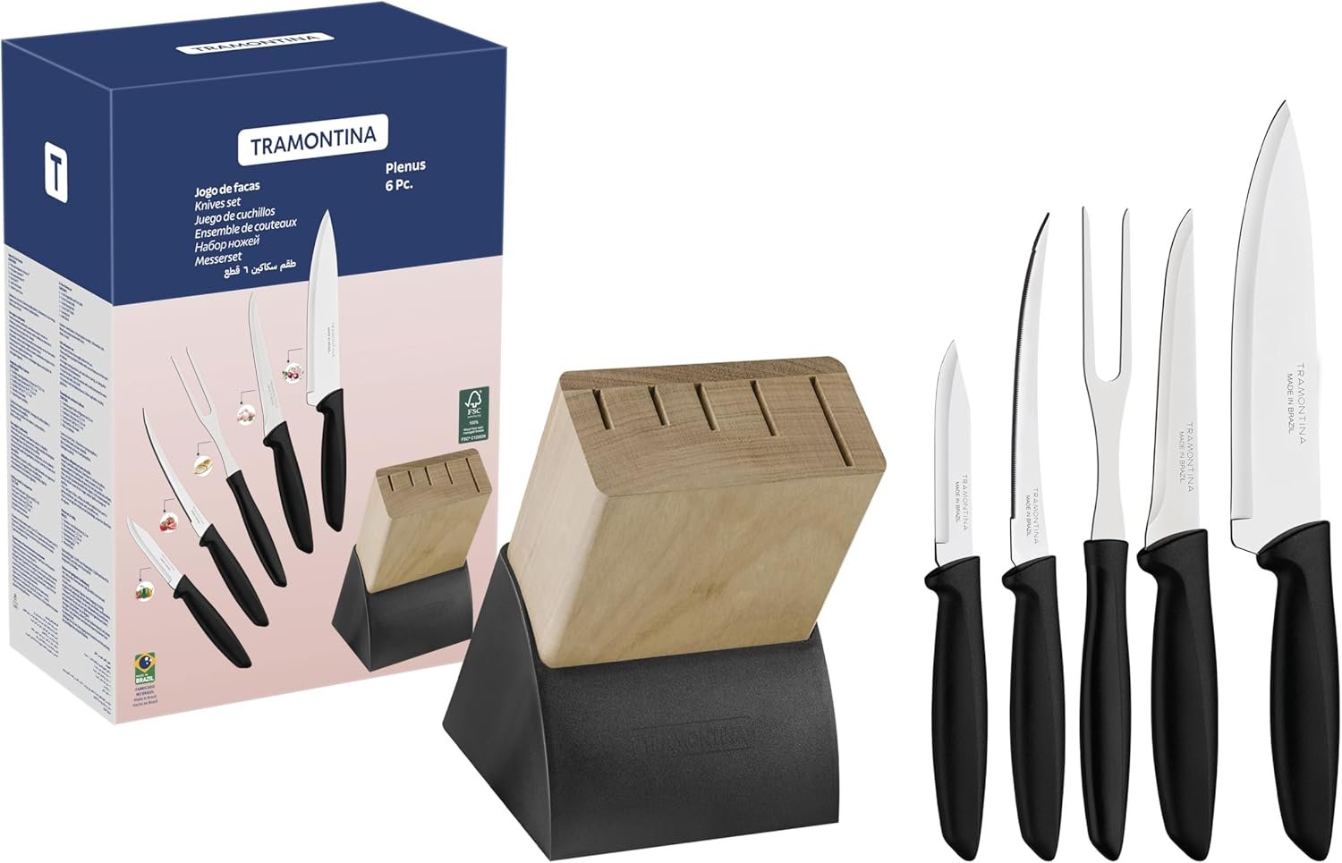 Jogo Facas 6 Peças Plenus com Cepo Tramontina Cutelaria