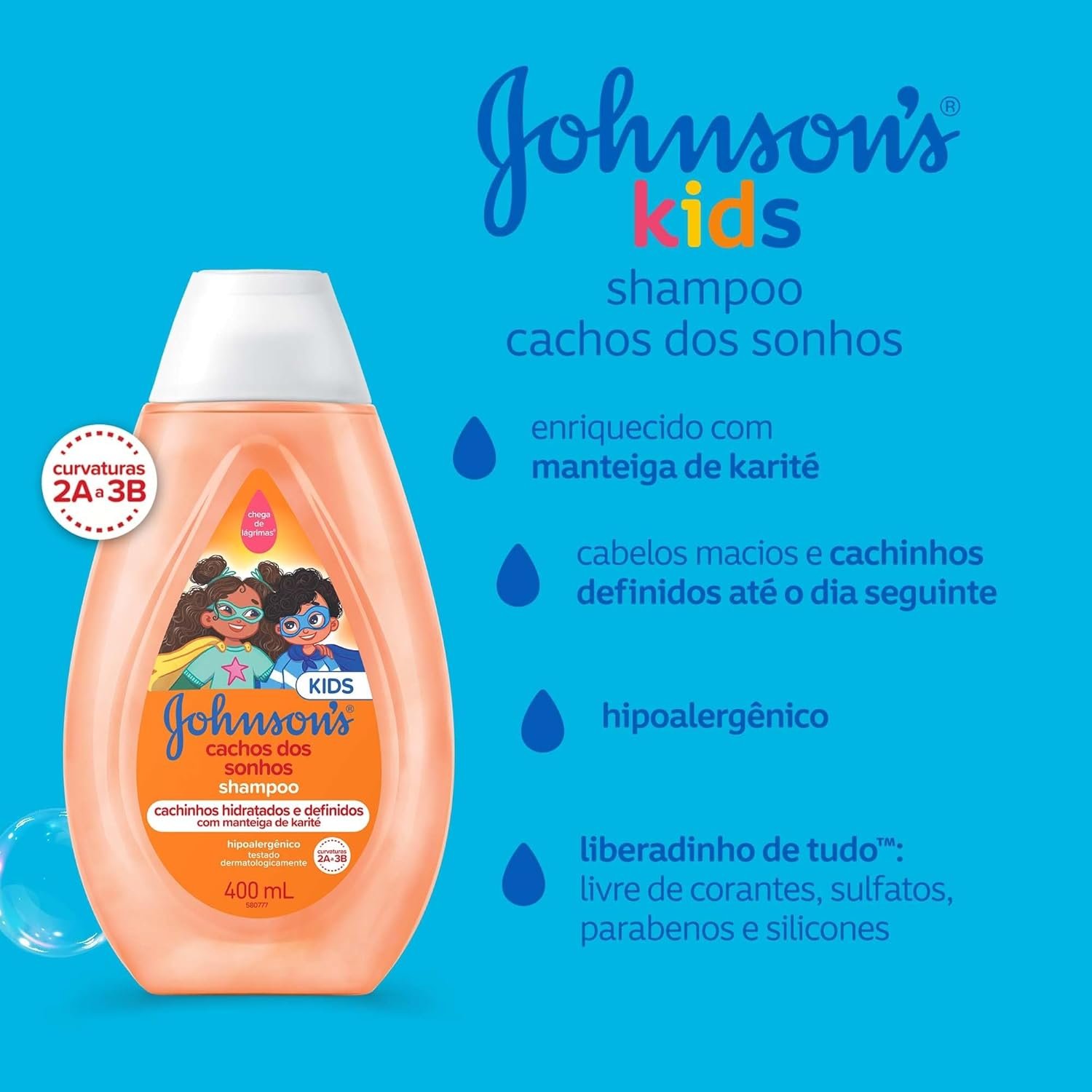 Johnson’s Baby Shampoo Infantil Para Cabelos Cacheados Cachos Dos Sonhos, 400ml