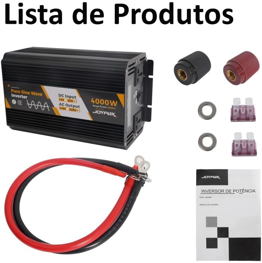Joyfox Inversor Energia Onda Senoidal Pura 800W 1000W 2000W 2500W 4000W 12v / 24v Para 110v / 220v Usb Conversor Transformador Tensão (24v Para 220v 4000W Pico 8000w)