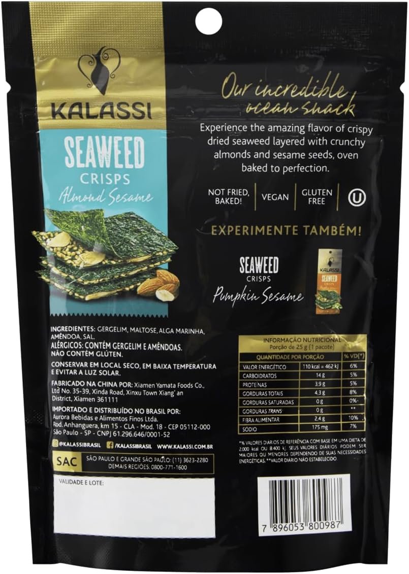 Kalassi Snack Gergelim Alga Marinha E Amêndoa Sem Glúten Sachê 25G