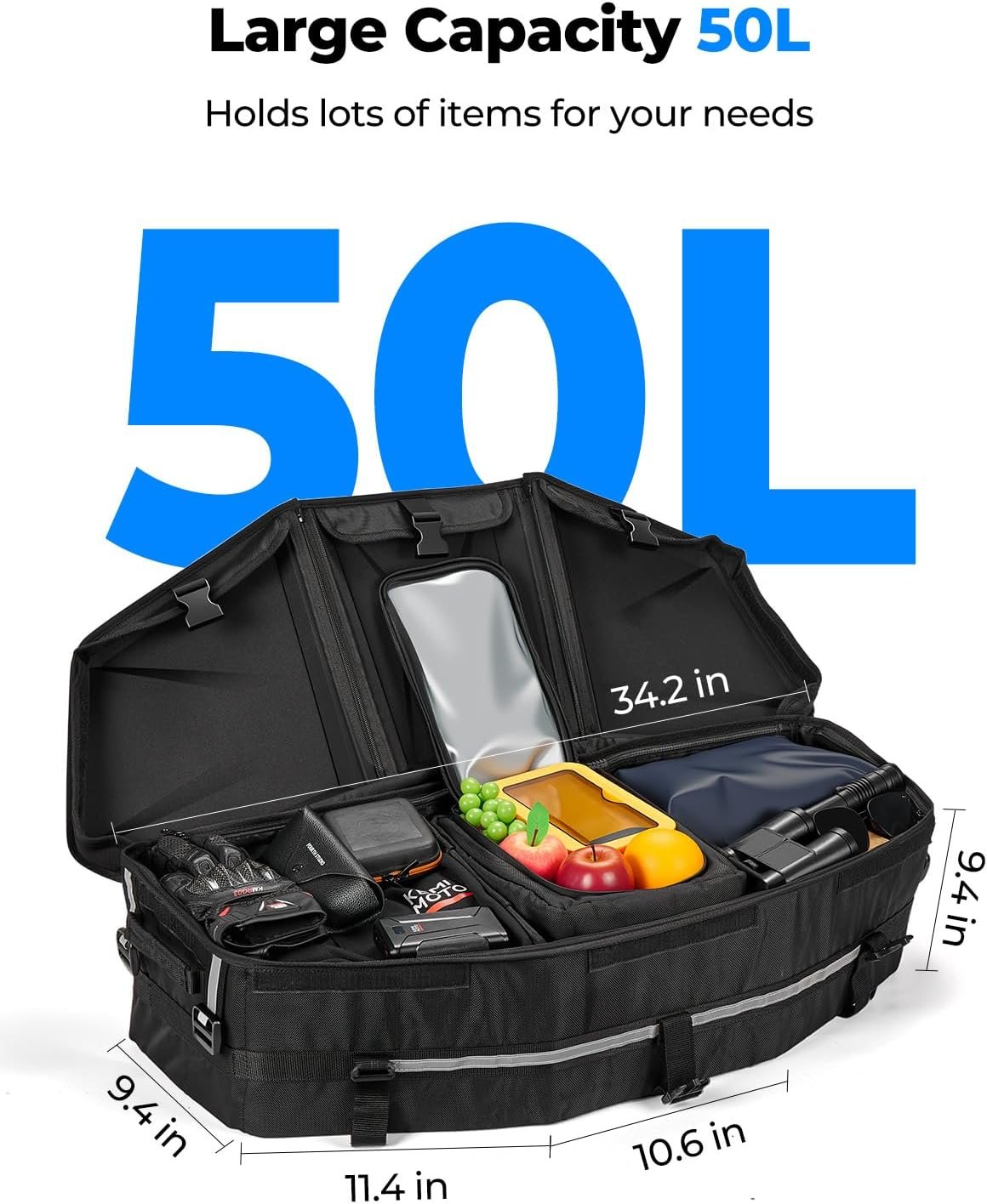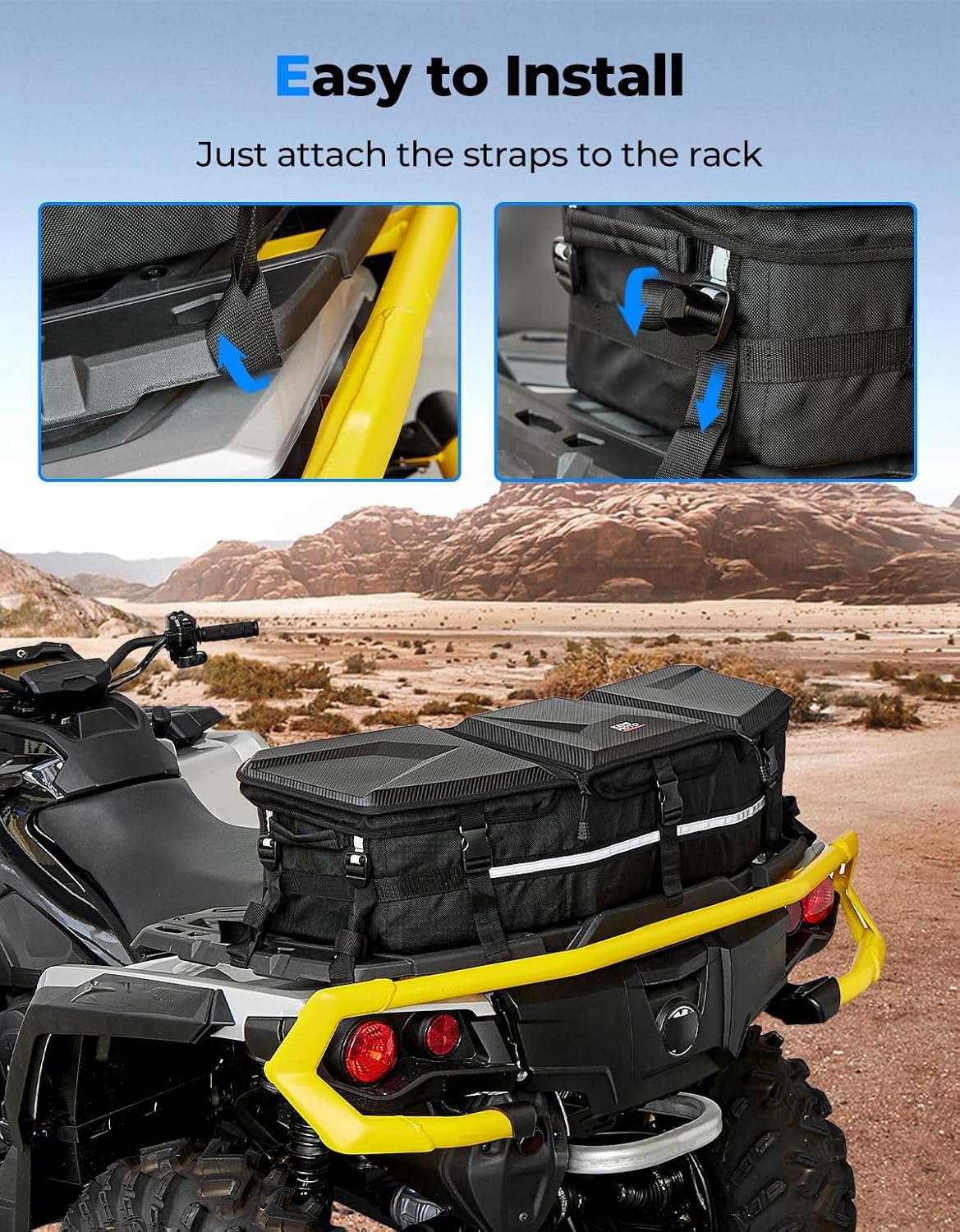 KEMIMOTO Bolsa de carga ATV atualizada, caixa de ferramentas para quadriciclo dianteiro/traseiro, 50L, compatível com Can-am X3, Outlander Renegade 500 800 570 850 650 1000 MAX 500 (preto)