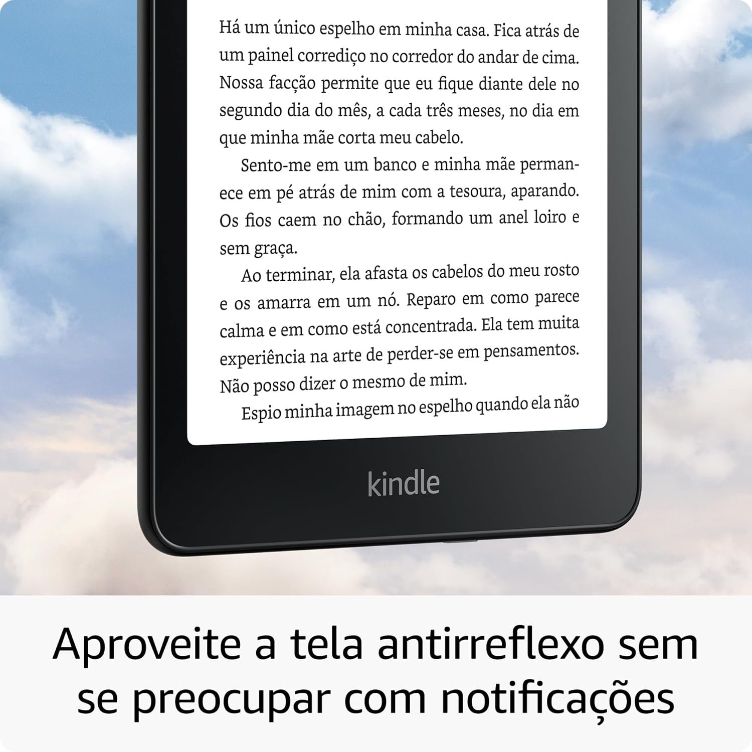 O Kindle mais rápido já lançado, com luz frontal autoadaptável, carregamento sem fio e bateria que dura semanas – Cor Preta Metálica.