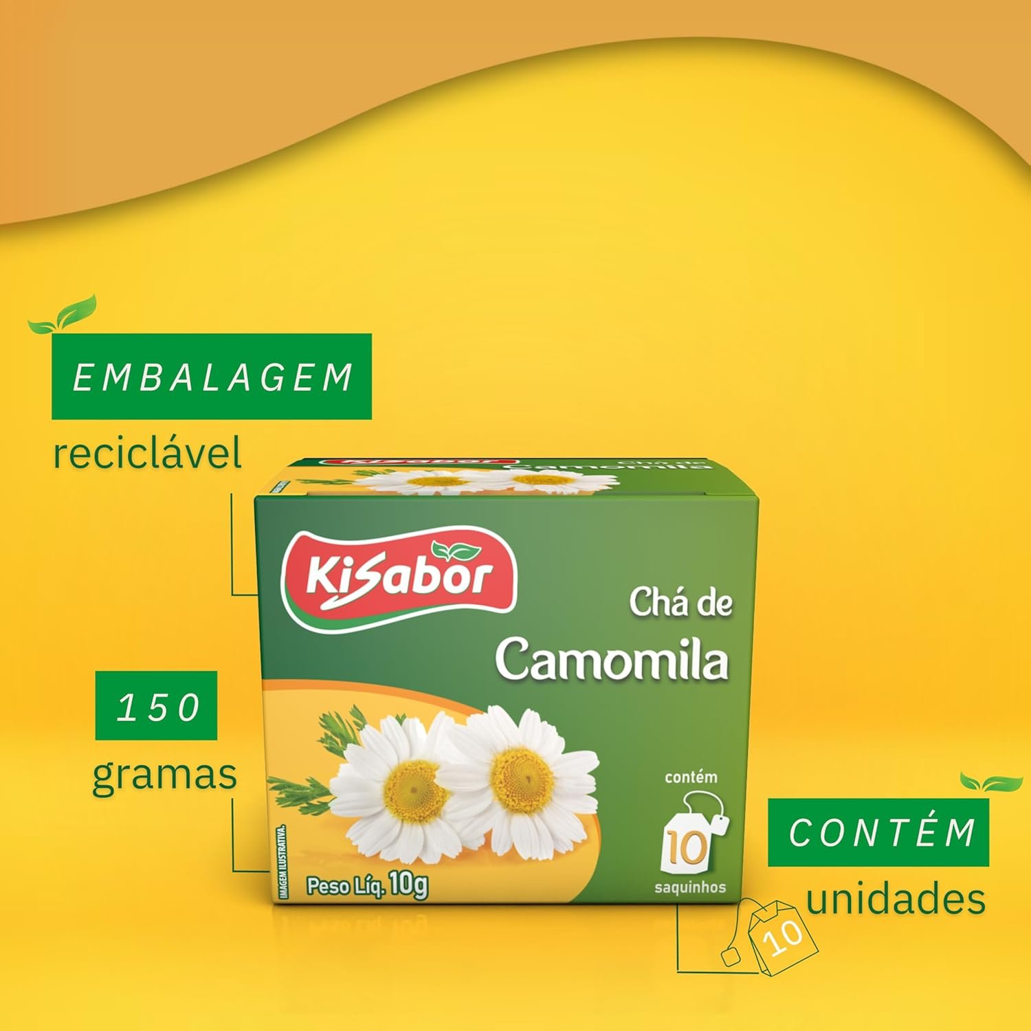 Kisabor, Chá de Camomila, Para infusão, 10 Gramas com 10 Saquinhos