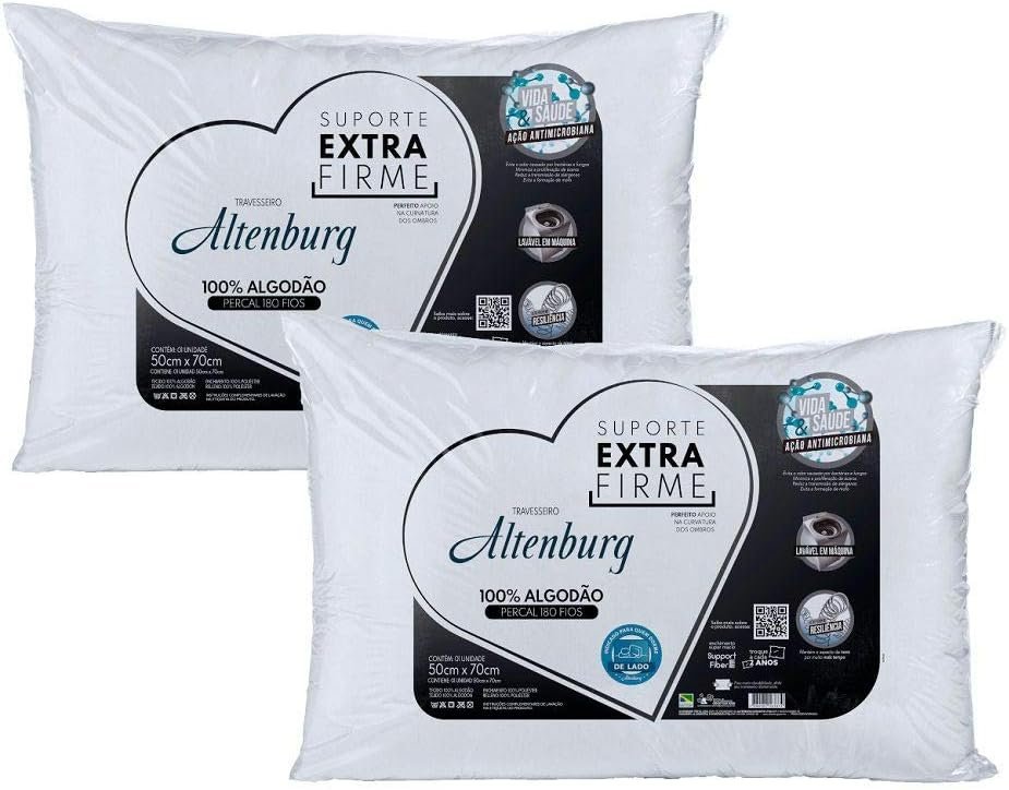 Kit 02 Travesseiros Altenburg Suporte Extra Firme 0,50×0,70m 180 FiosKit 02 Travesseiros Altenburg Suporte Extra Firme 0,50×0,70m 180 Fios