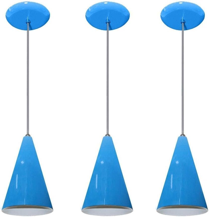 Kit 03 pendentes de aluminio modelo cone – ideal para balcao cozinha americana, bancada (Azul)