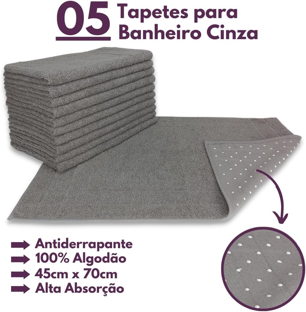 Kit 05 Tapete para Banheiro Atoalhado Felpudo Luxo c/Antiderrapante 550g/m² 45x70cm Padrão Hotel/Pousada – CinzaKit 05 Tapete para Banheiro Atoalhado Felpudo Luxo c/Antiderrapante 550g/m² 45x70cm Padrão Hotel/Pousada – Cinza