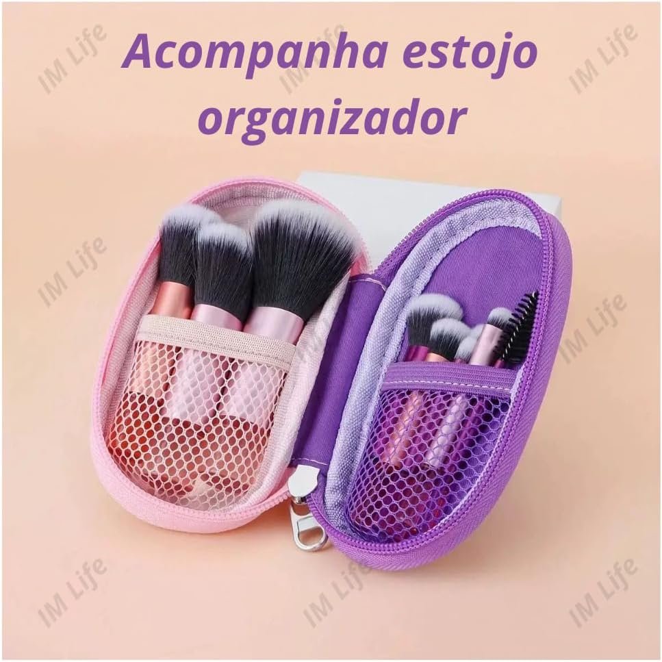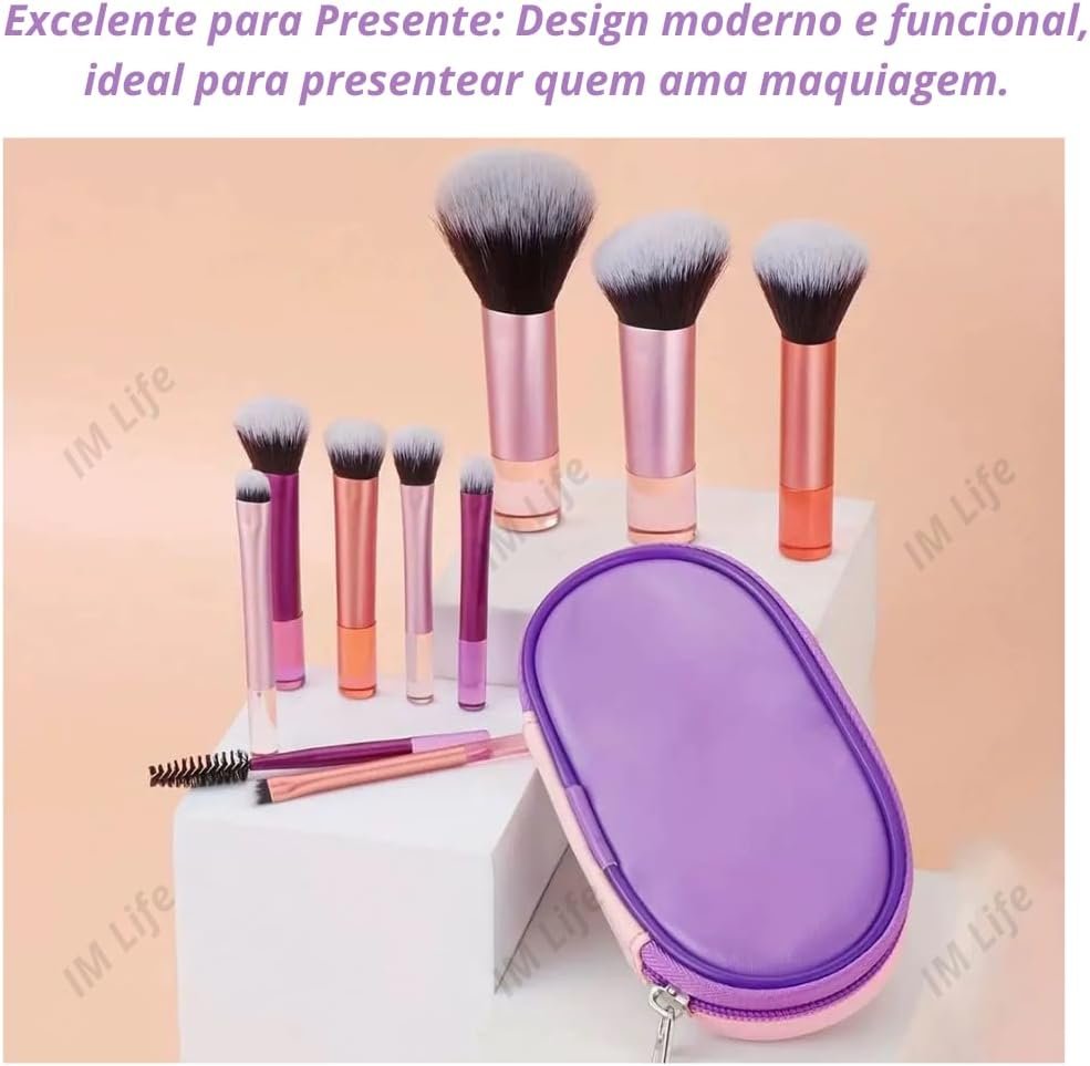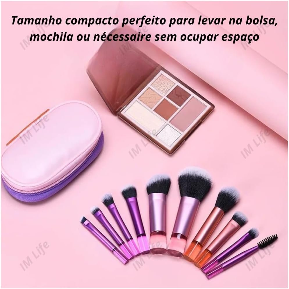 Kit 10 Pincéis de Maquiagem com Estojo Cerdas Sintéticas Macias, Portátil e Completo para Base, Pó, Blush, Corretivo e Sombras – Travel Size Ideal para Presente, Uso Diário e Adolescentes