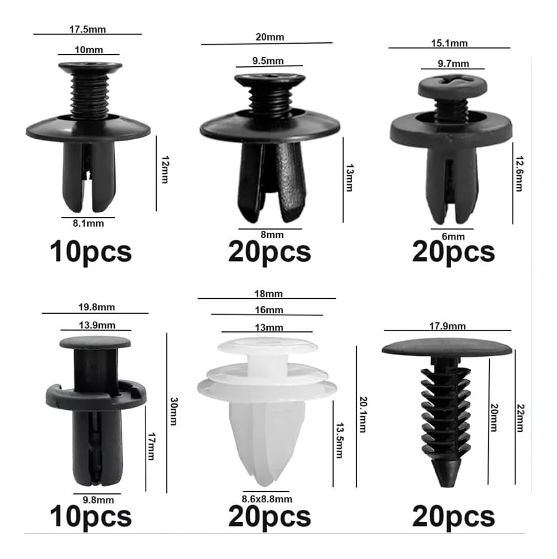 Realce o visual do seu carro com este kit de presilhas e grampos universais. Ideal para acabamento interno e externo, garantindo uma fixação resistente em parabarros, parachoque e forros de porta. Renove seu veículo com praticidade e segurança!