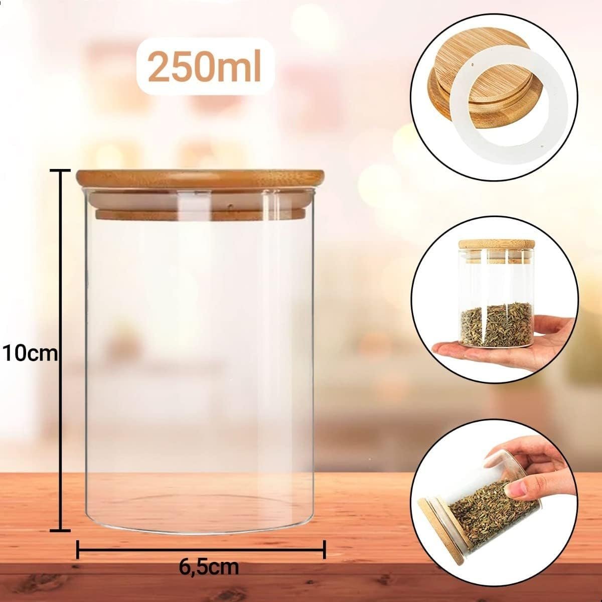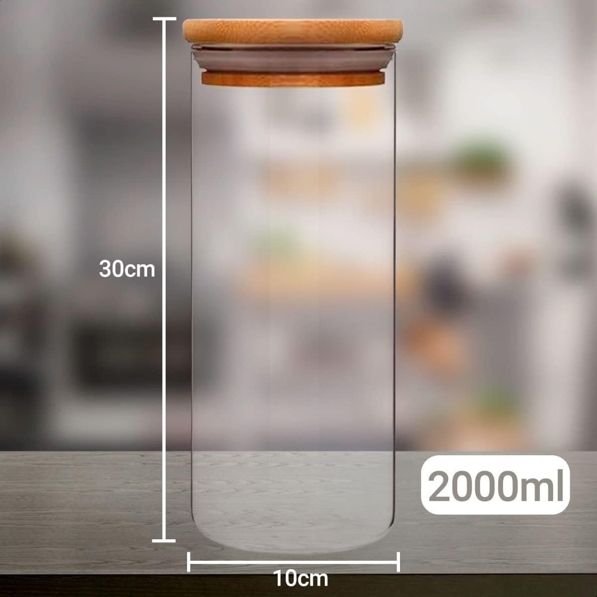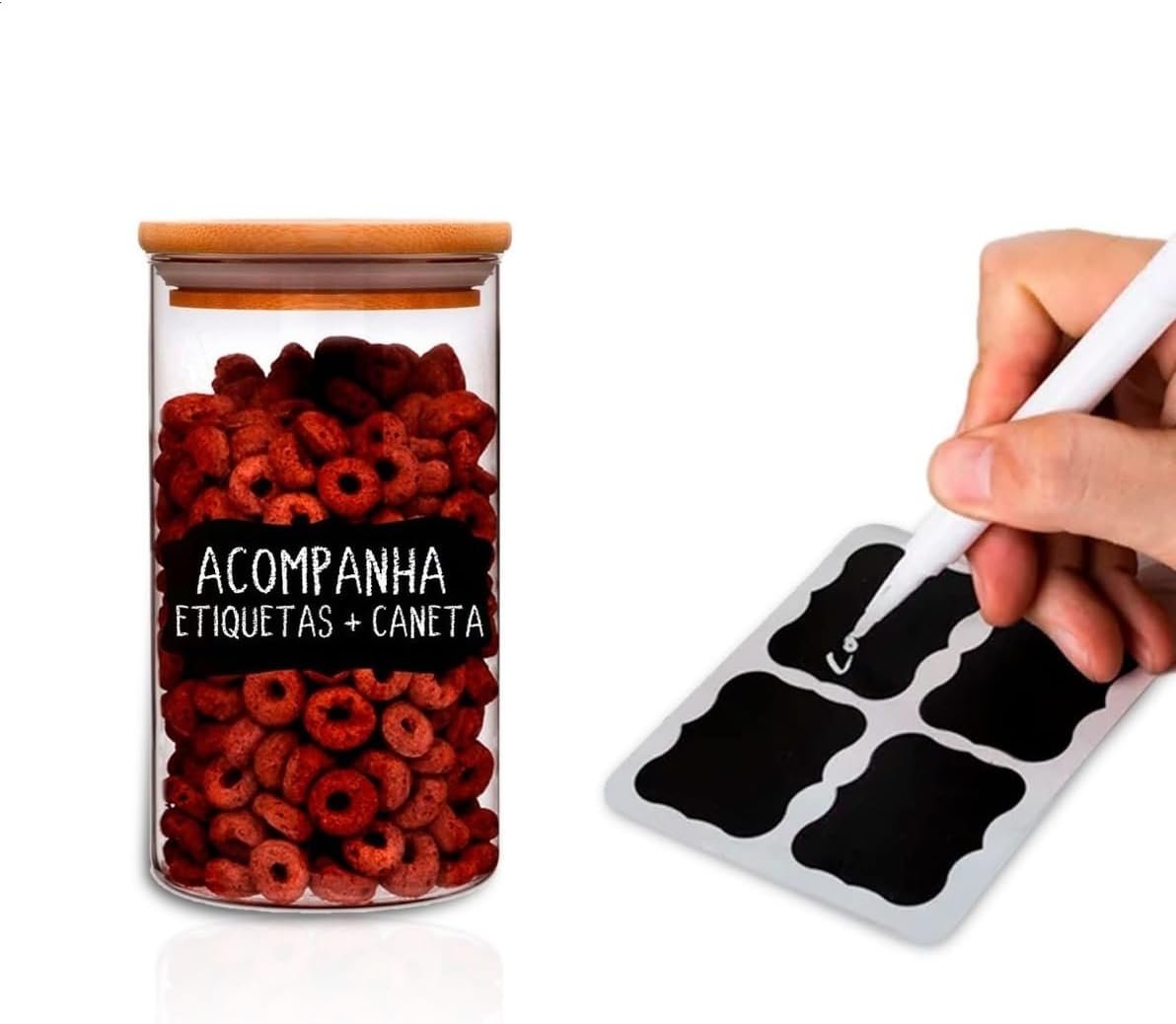 Kit 12 Potes Herméticos de Vidro com Tampa de Bambu | Inclui Etiquetas e Caneta branca | Capacidades 200ml, 250ml, 400ml, 600ml, 800ml, 2000ml | Organização e Estilo para sua Cozinha