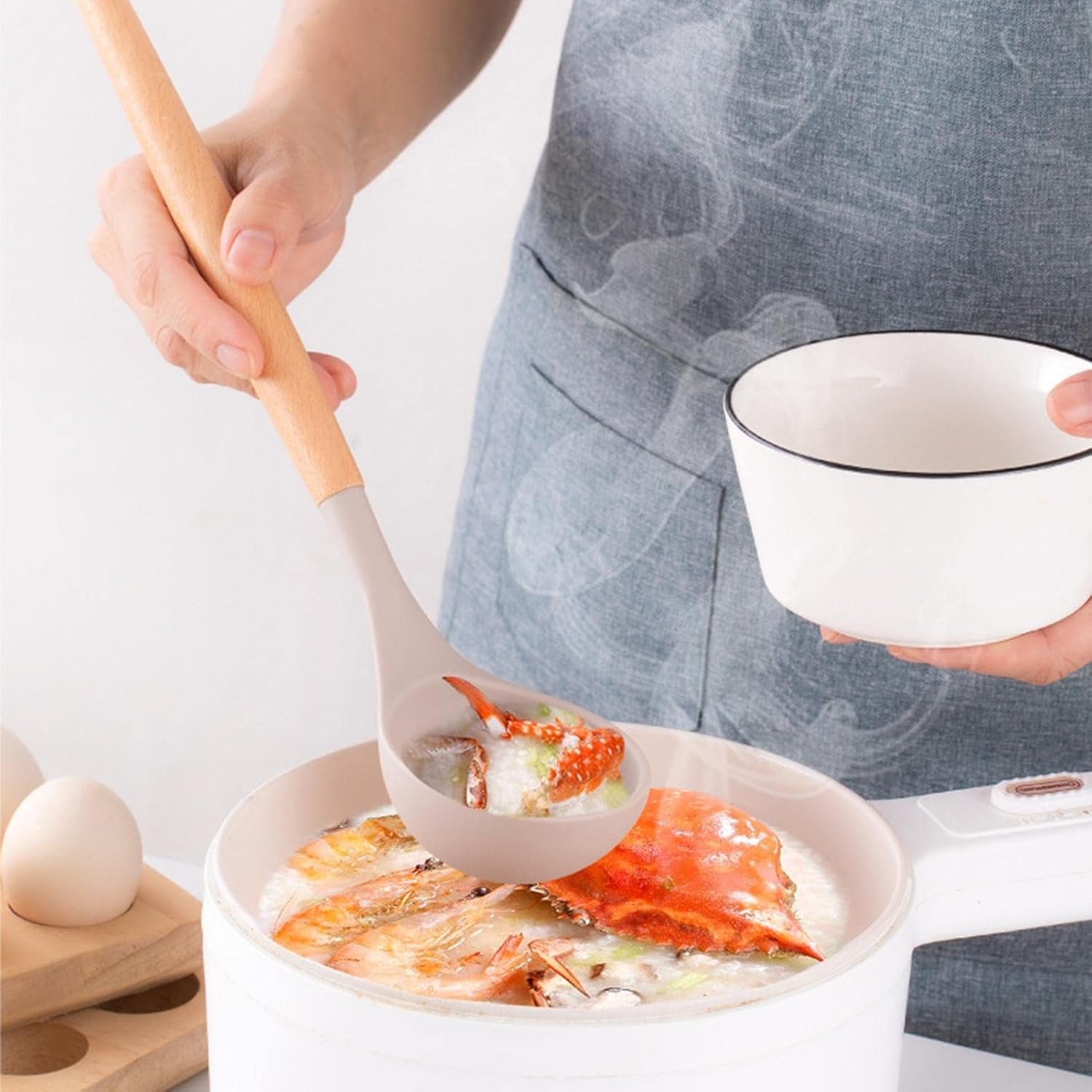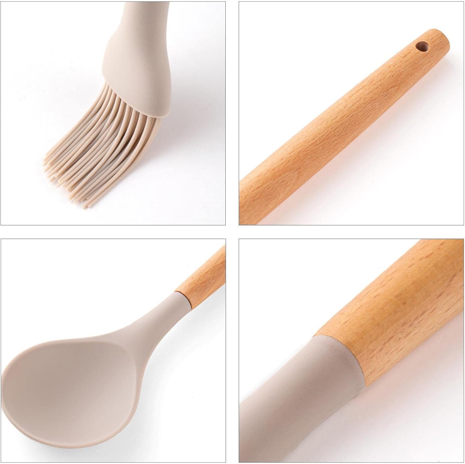 Kit 12 Utensílios de Cozinha em Silicone Cabo Madeira Conjunto Jogo Completo Espátula Concha Colher Resistente Alta Temperatura Premium