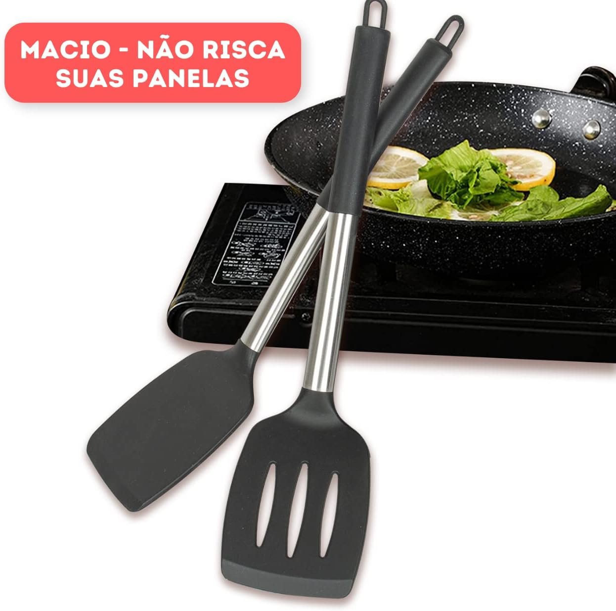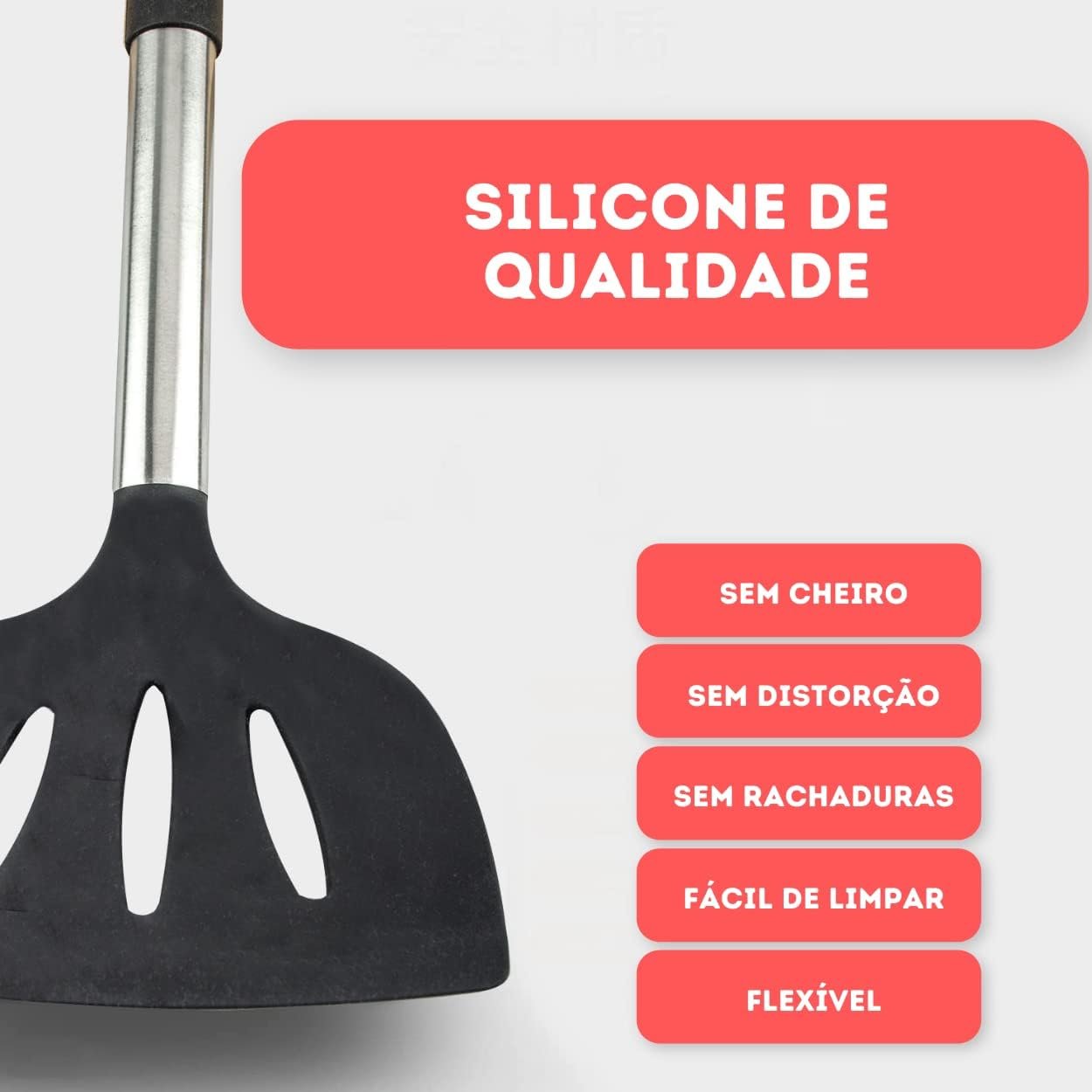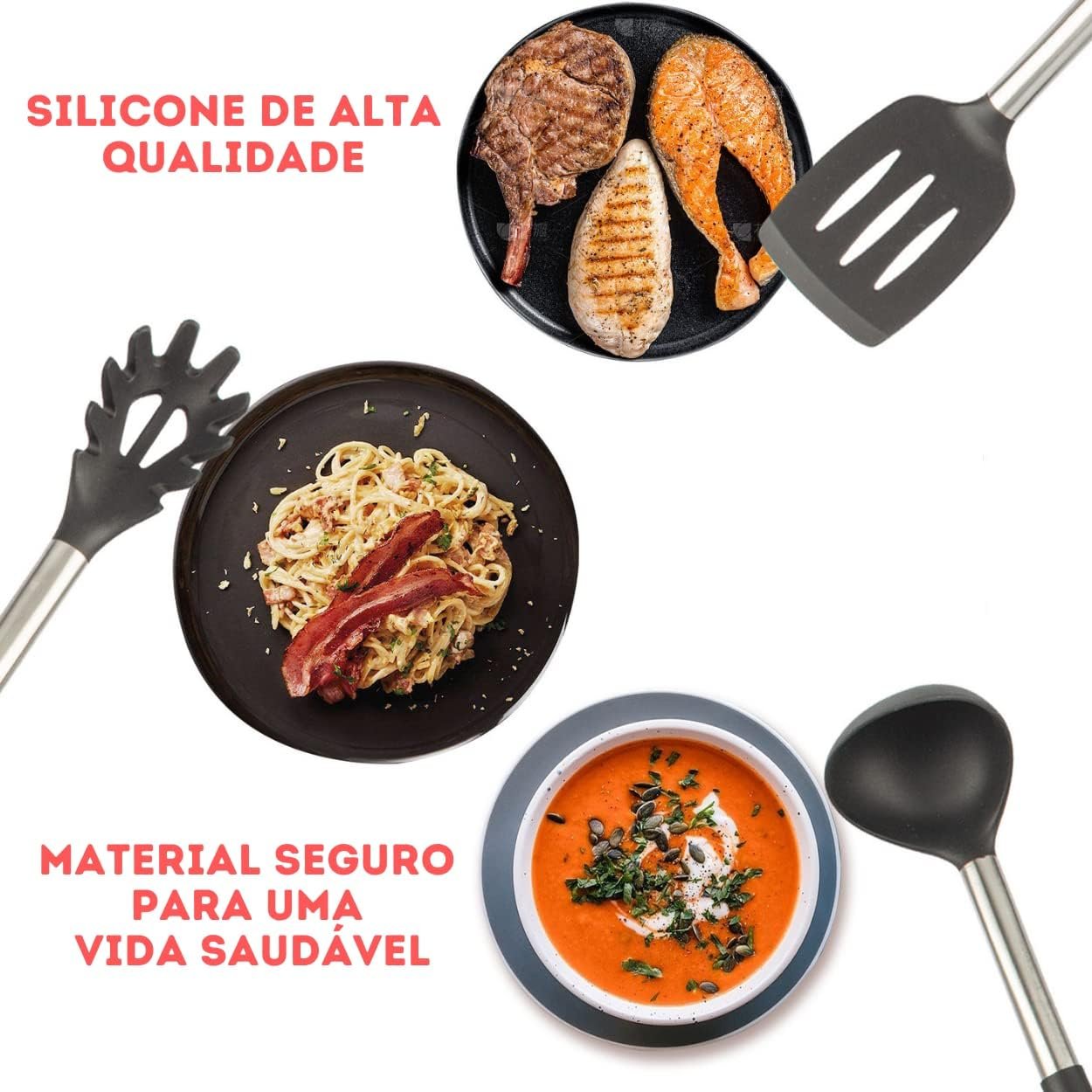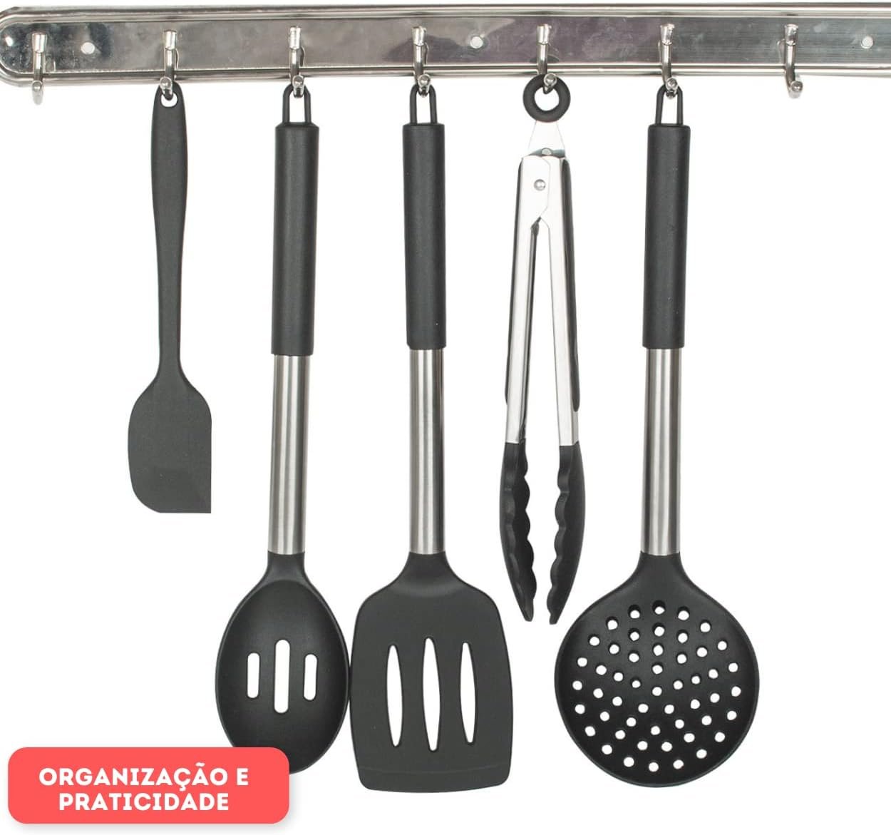 Kit 15 Utensílios De Cozinha Com Cabo De Inox e Silicone Premium (Preto)