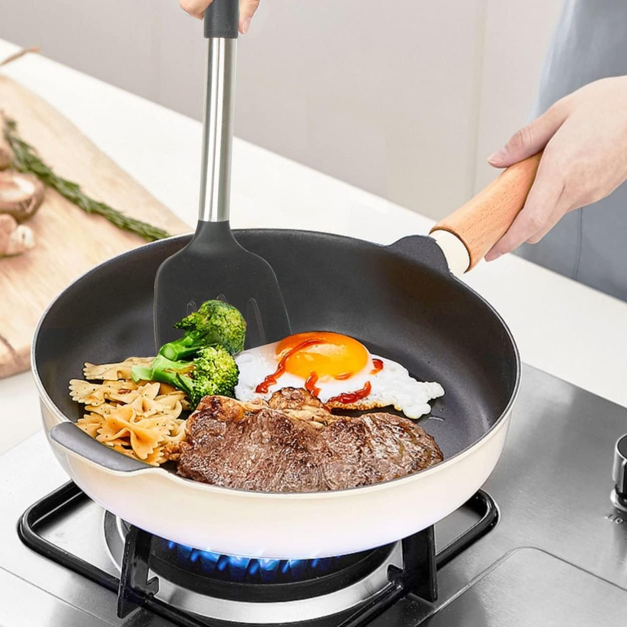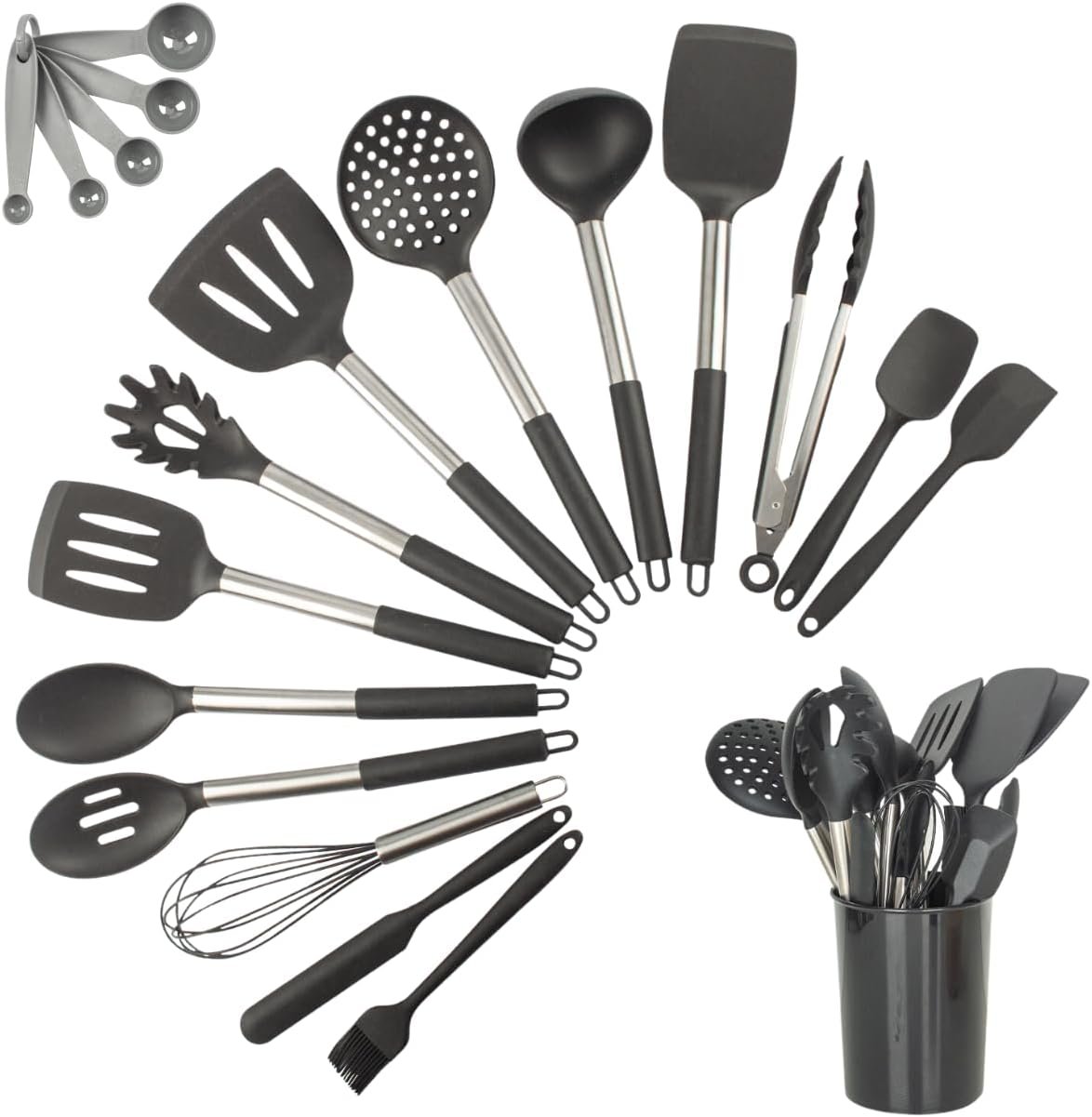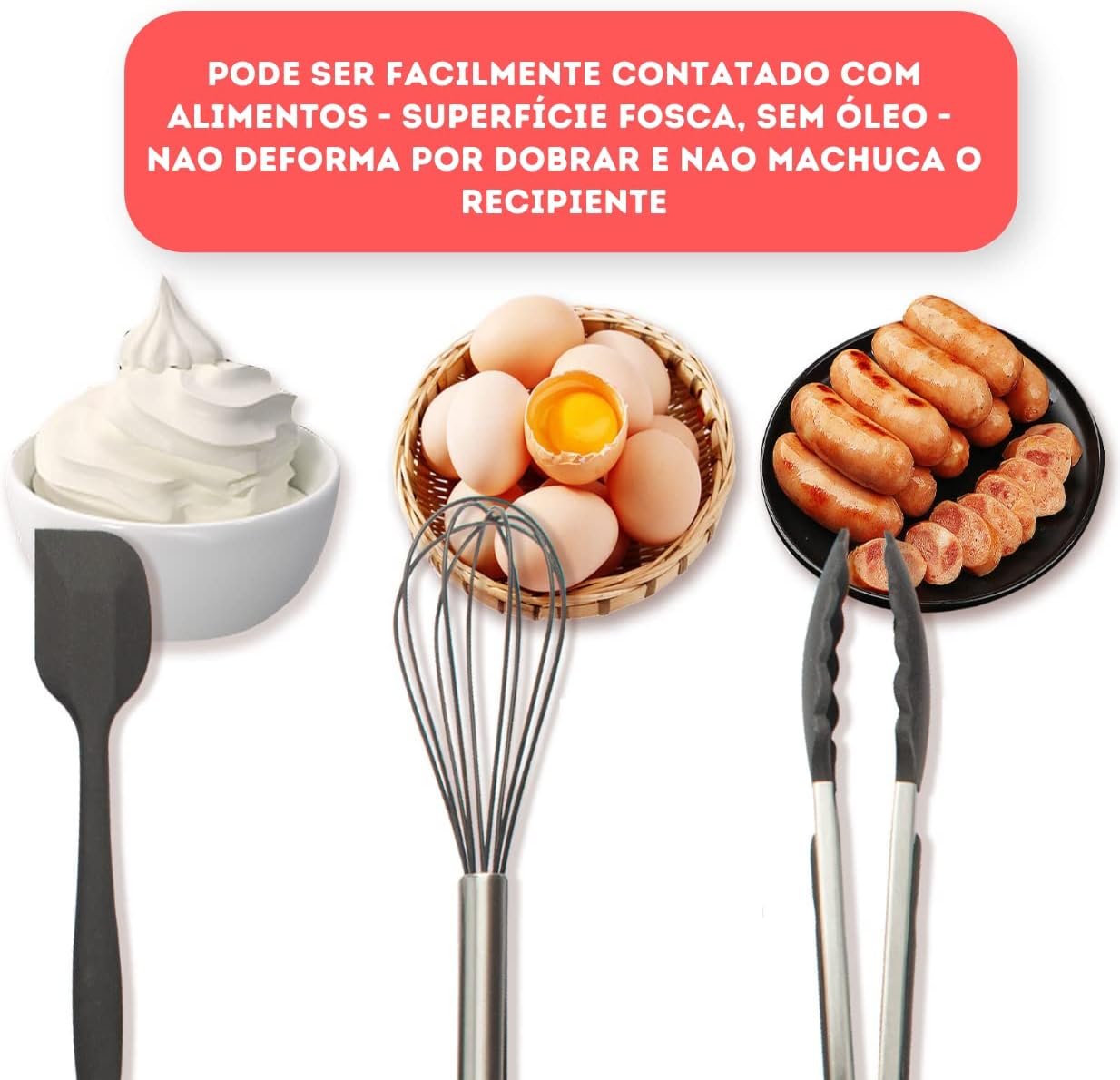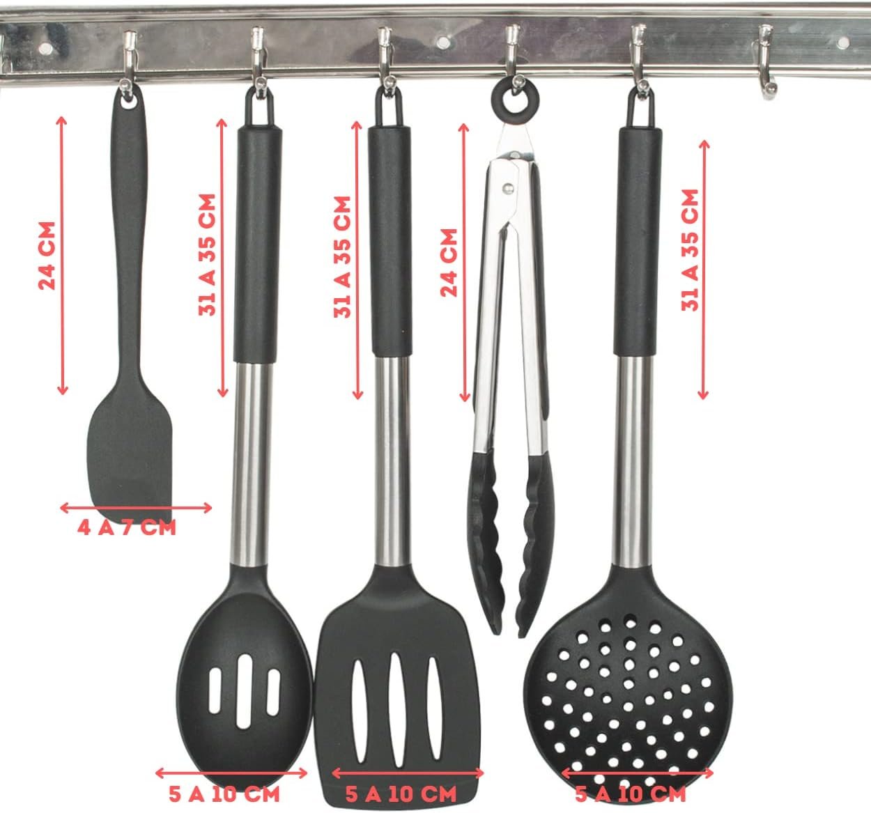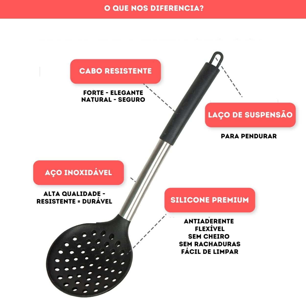 Kit 15 Utensílios De Cozinha Com Cabo De Inox e Silicone Premium (Preto)