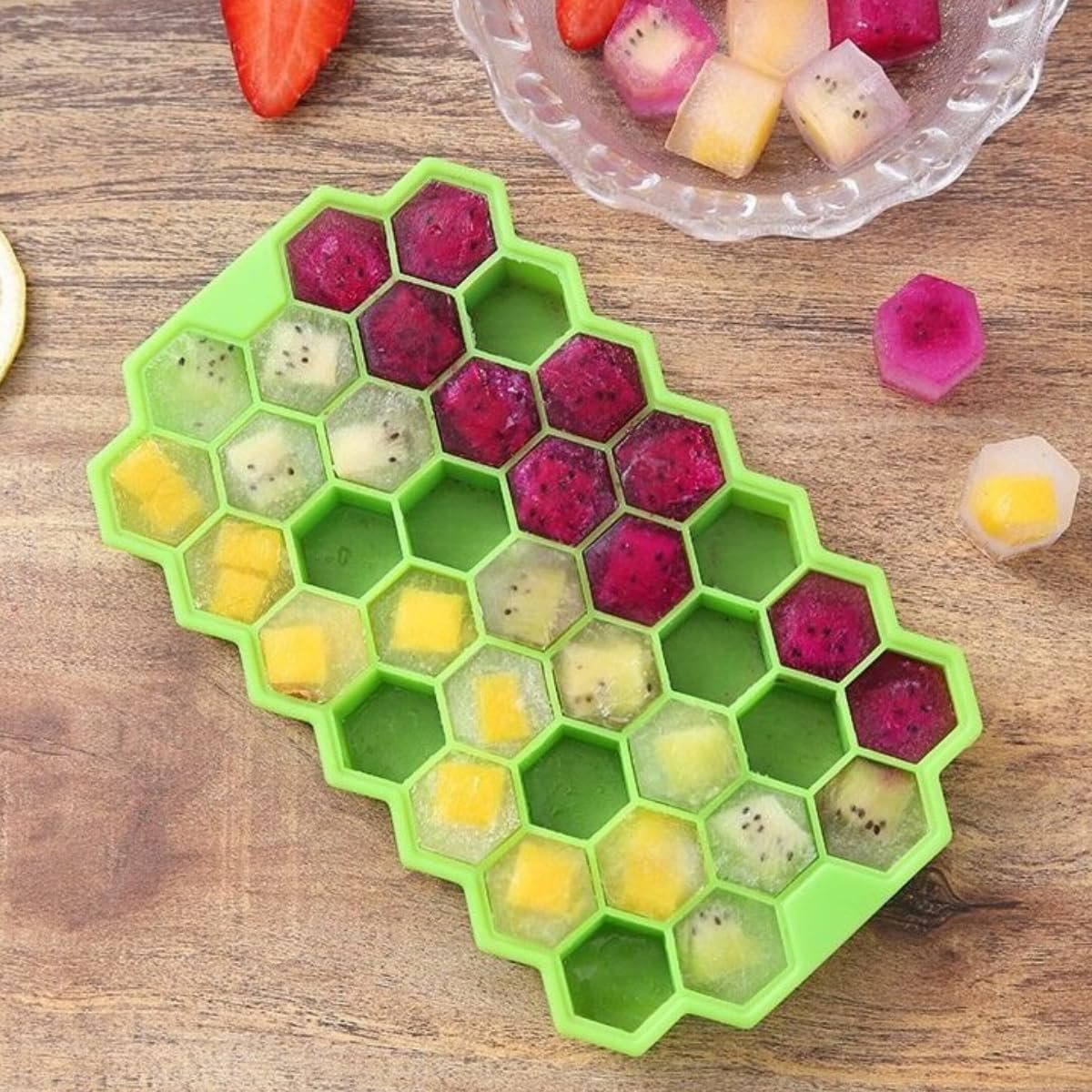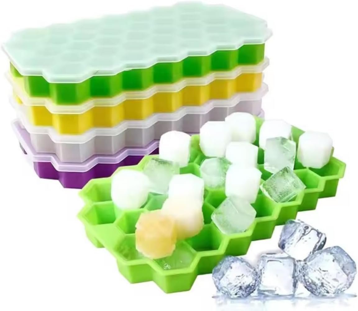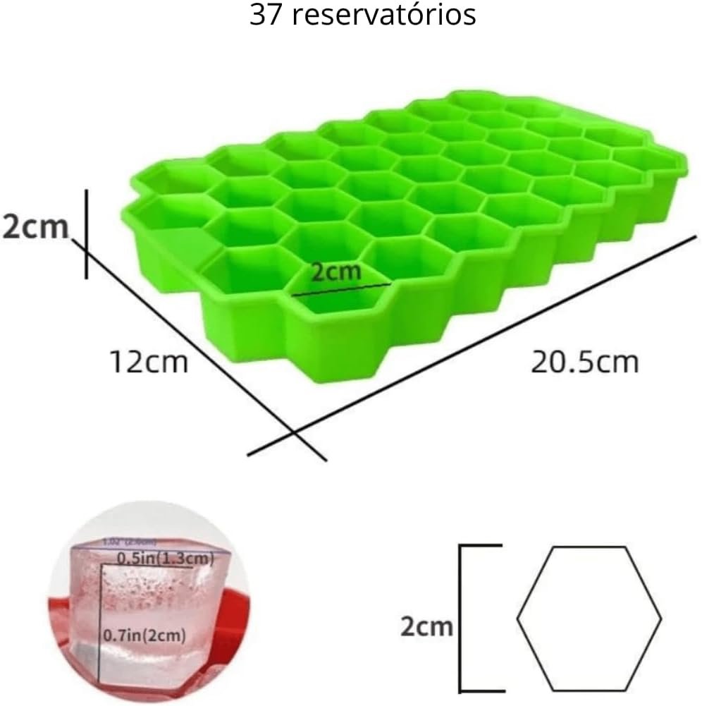 Kit 2 Formas de Gelo Ice Colmeia em Silicone Com Tampa 37 Cavidades Flexível Resistente Altas e Baixas Temperaturas Multifunção Ideal para Gelos para Drinks Shots Matinais Doces e Receitas Criativas