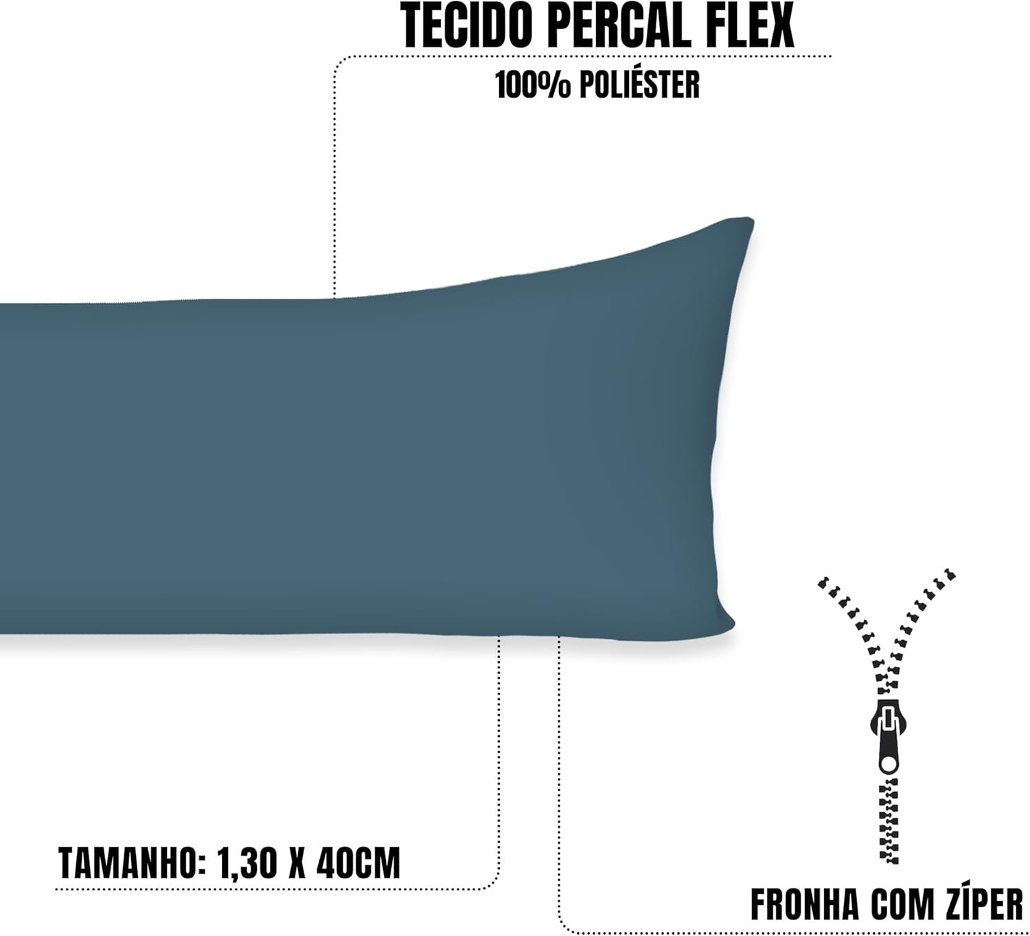 Kit 2 Fronhas C/Zíper 1,30x40cm Percal Flex 400 fios Travesseiro de Corpo Xuxão Toque Macio (azul topazio)Kit 2 Fronhas C/Zíper 1,30x40cm Percal Flex 400 fios Travesseiro de Corpo Xuxão Toque Macio (azul topazio)