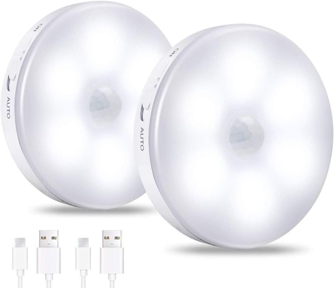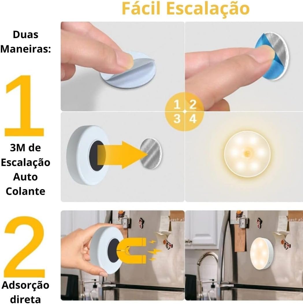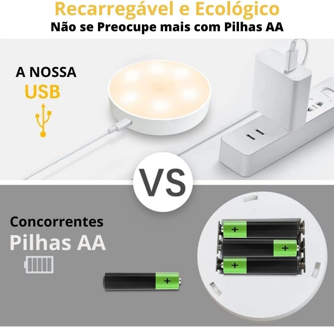 Kit 2 Luminárias Lampada LED Sem Fio Com Sensor de Presença USB Recarregáveis Iluminação Inteligente Sem Fio Com Sensor de Movimento 2 Unidades Com Protetor de Cartão