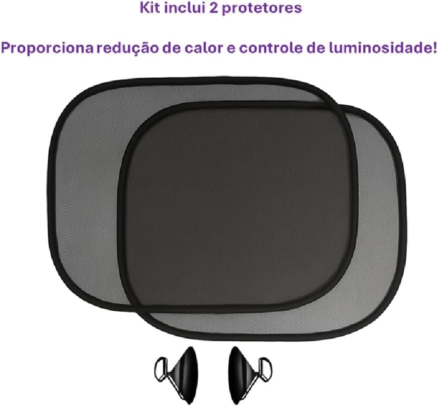 Kit 2 Peças, Protetor Solar de Janela Lateral de Carro, Dobrável, com Ventosas, 44 x 37 cm, Preto