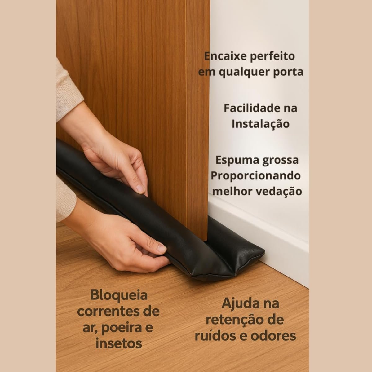 Kit 2 Protetores Veda Porta Fresta Duplo Rolinho 80cm Preto Bloqueia Vento Poeira e Insetos Vedação Térmica e Acústica
