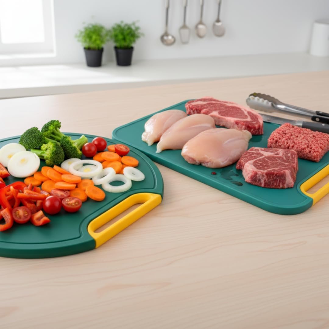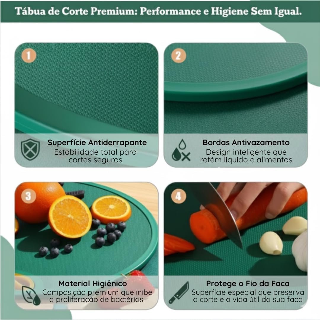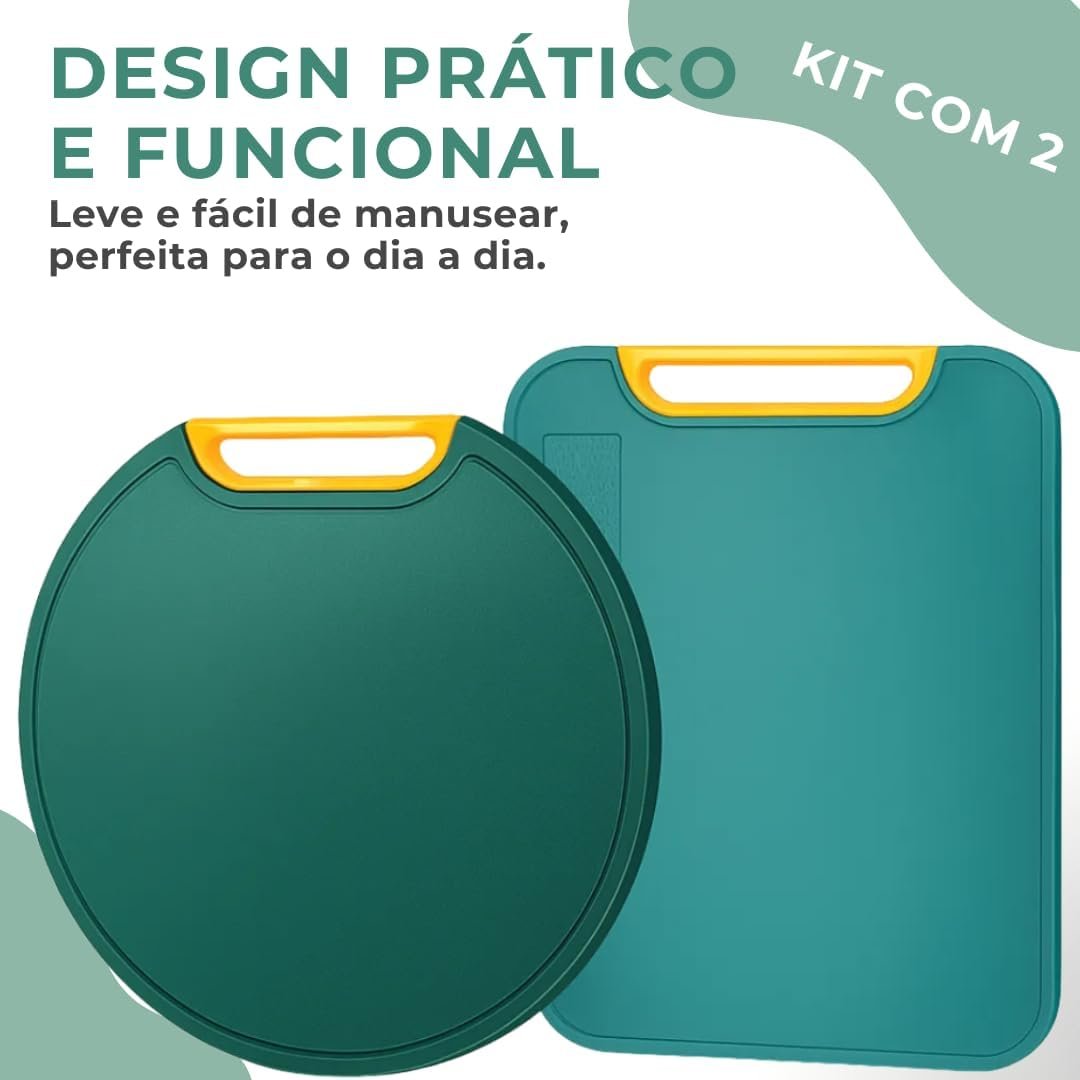 Kit 2 Tábuas de Corte Antibacteriana para Frutas, Legumes e Carnes – Verde