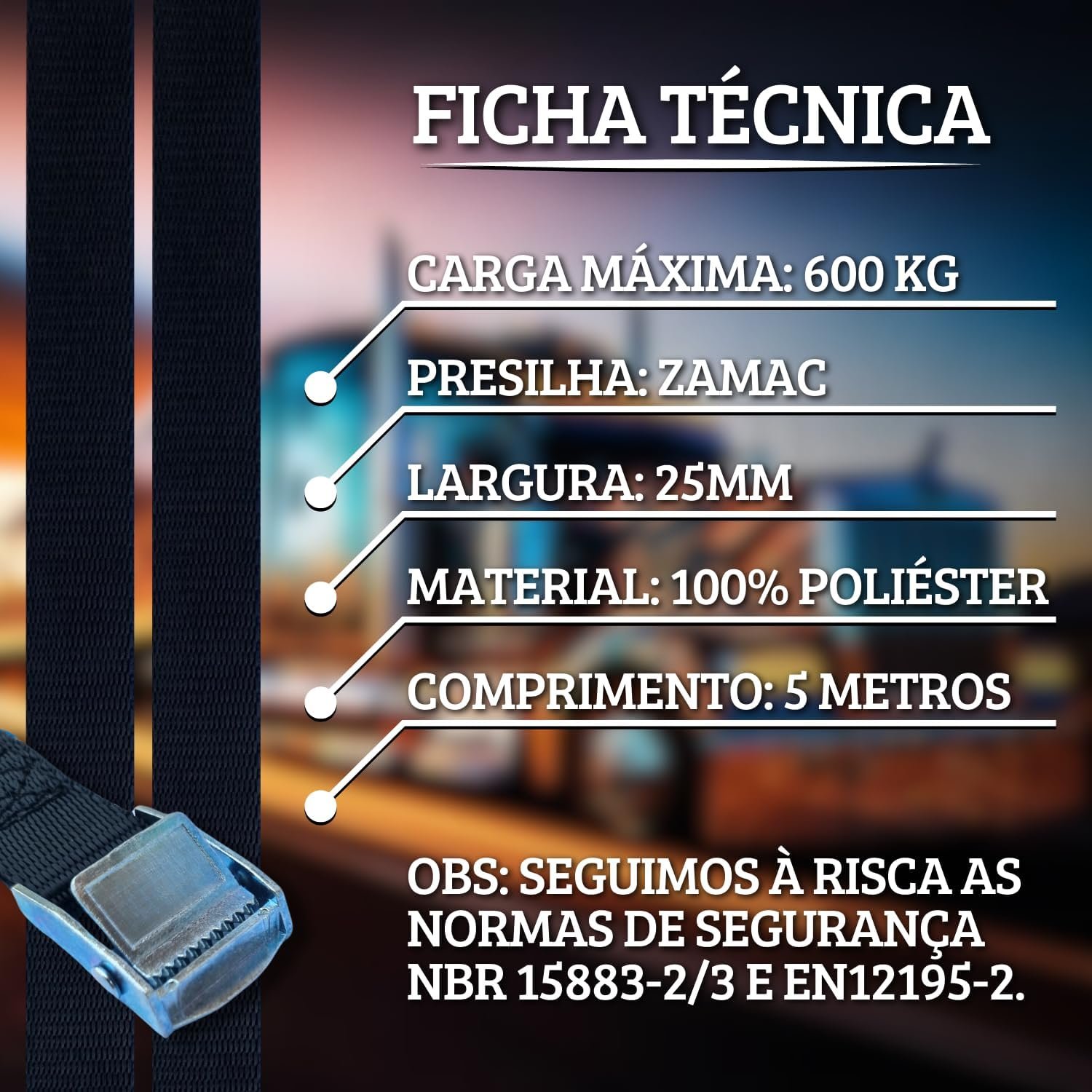 Proteja sua carga com o Kit 2x Cinta Presilha Zamac 600kg. Com 5 metros de fita, esse conjunto é ideal para segurança e praticidade no transporte de cargas. Garanta já o seu!