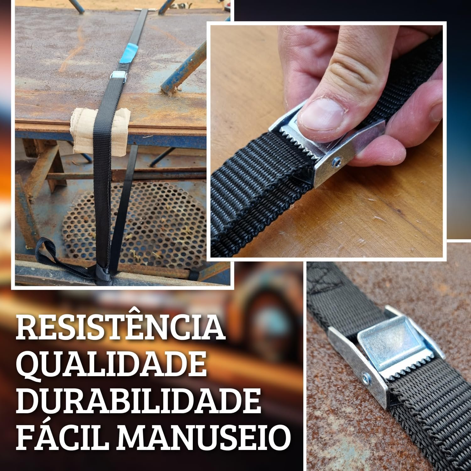 Kit 2x Cinta Presilha Zamac 600kg 5 Metros Fita Rack Amarração de Carga Mordente (2)