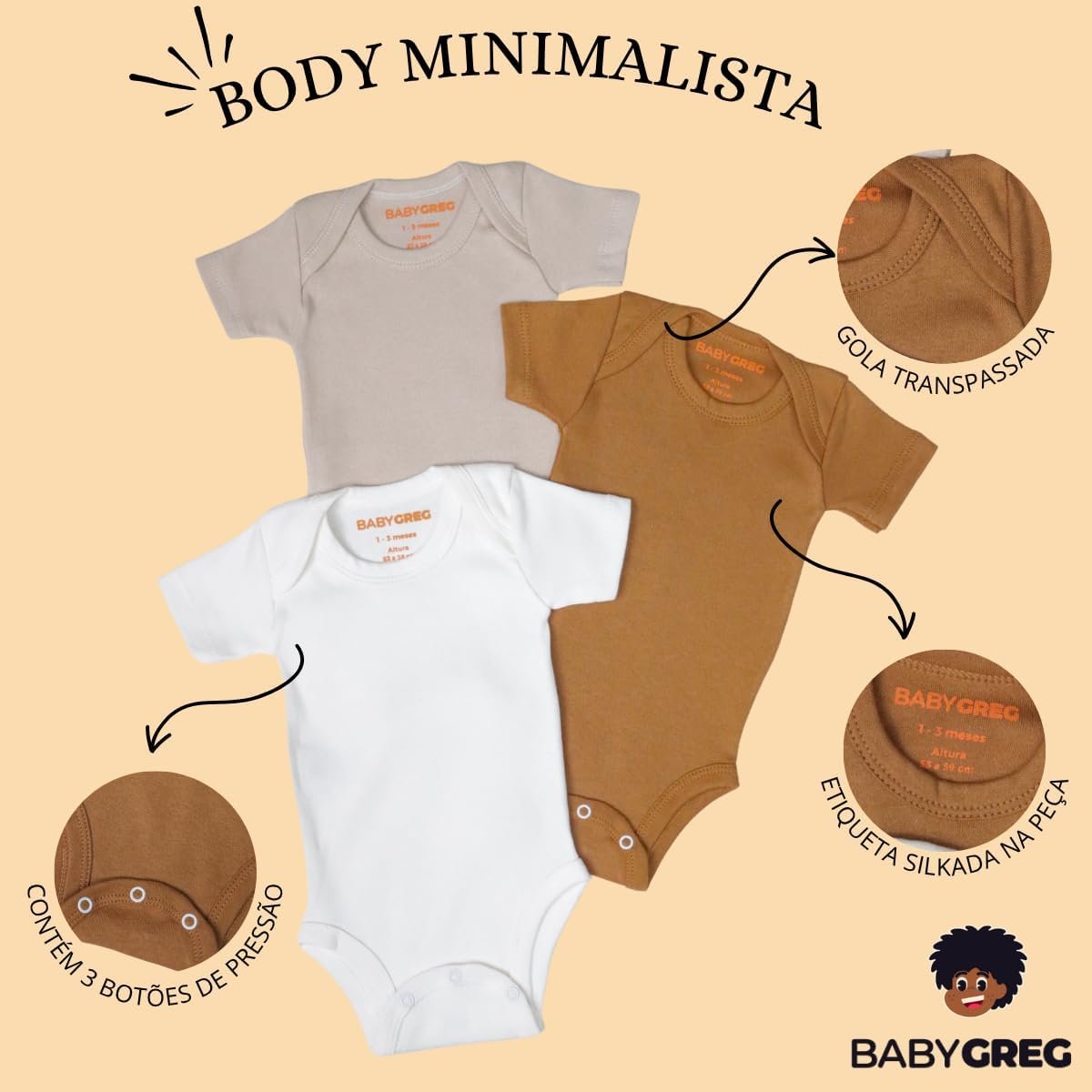 Kit 3 Body Minimalista para Bebês Unissex – Baby Greg