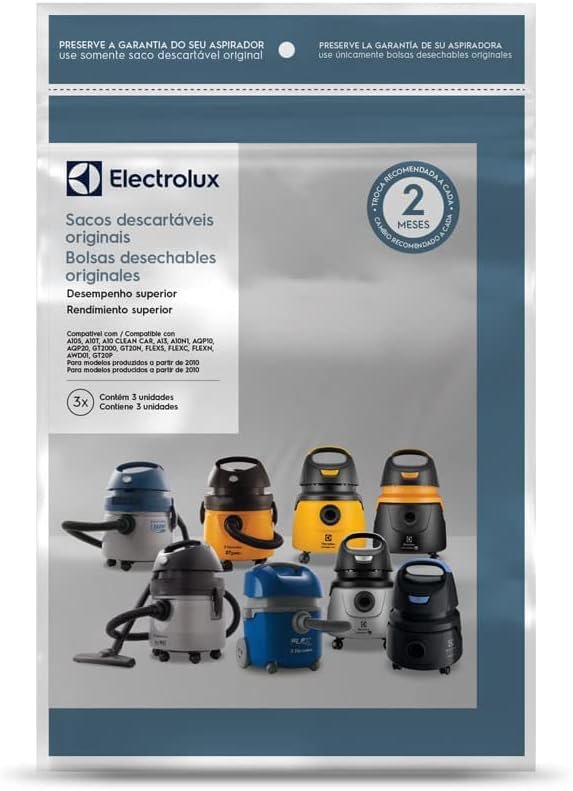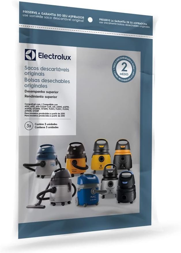 Kit 3 Sacos de aspirador de pó Electrolux (CSE10) – Modelos A10, Acqua Power e Gt2000. Modelos posteriores a 2010