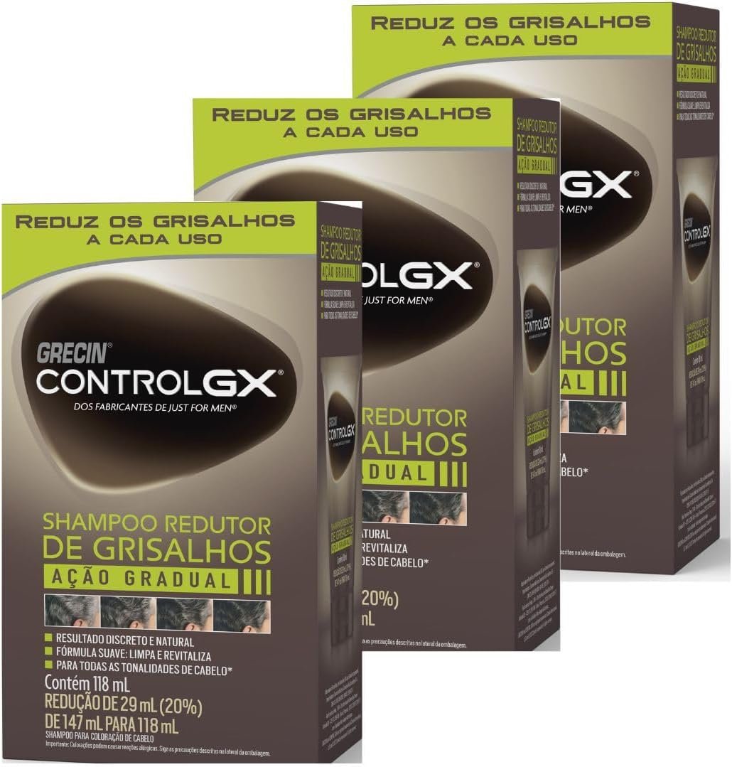 Kit 3x Shampoo Redutor De Grisalhos Grecin Control Gx 118mlKit 3x Shampoo Redutor De Grisalhos Grecin Control Gx 118ml