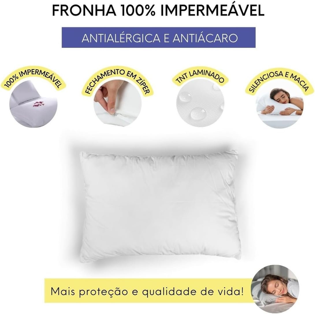 Kit 4 Capas Protetoras de Travesseiro Fronha Impermeável e Antialérgica