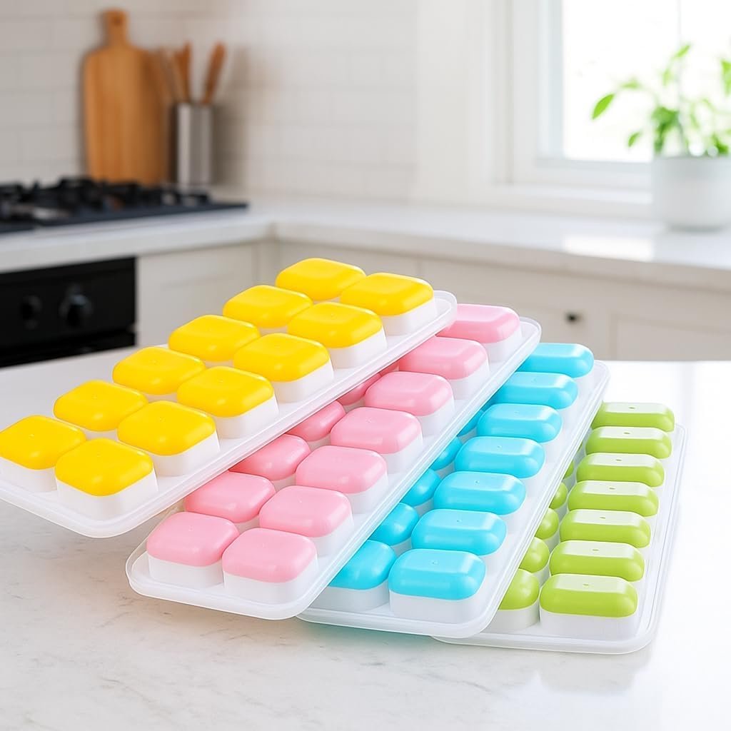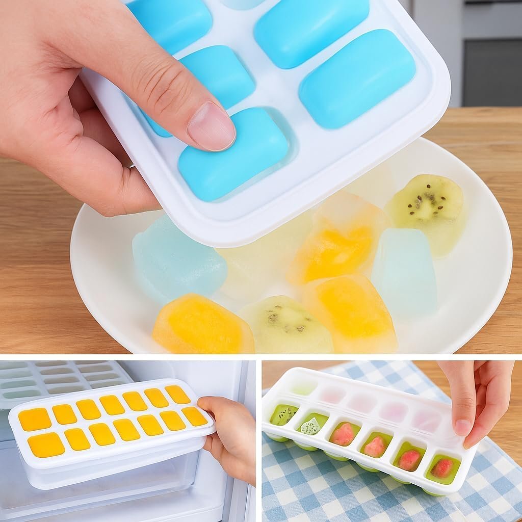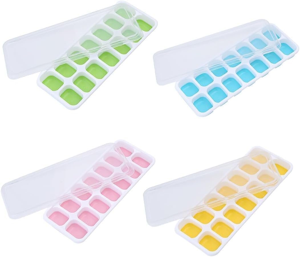 Kit 4 Formas Premium de Gelo com Tampa Silicone Flexível Multiuso Papinha Bebê Drinks Whisky Frutas Molhos Antiodor Livre BPA Freezer Desenforma Fácil Cozinha Organizada Reutilizável Durável