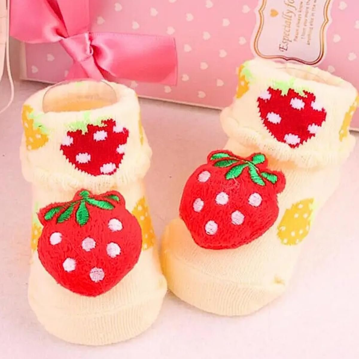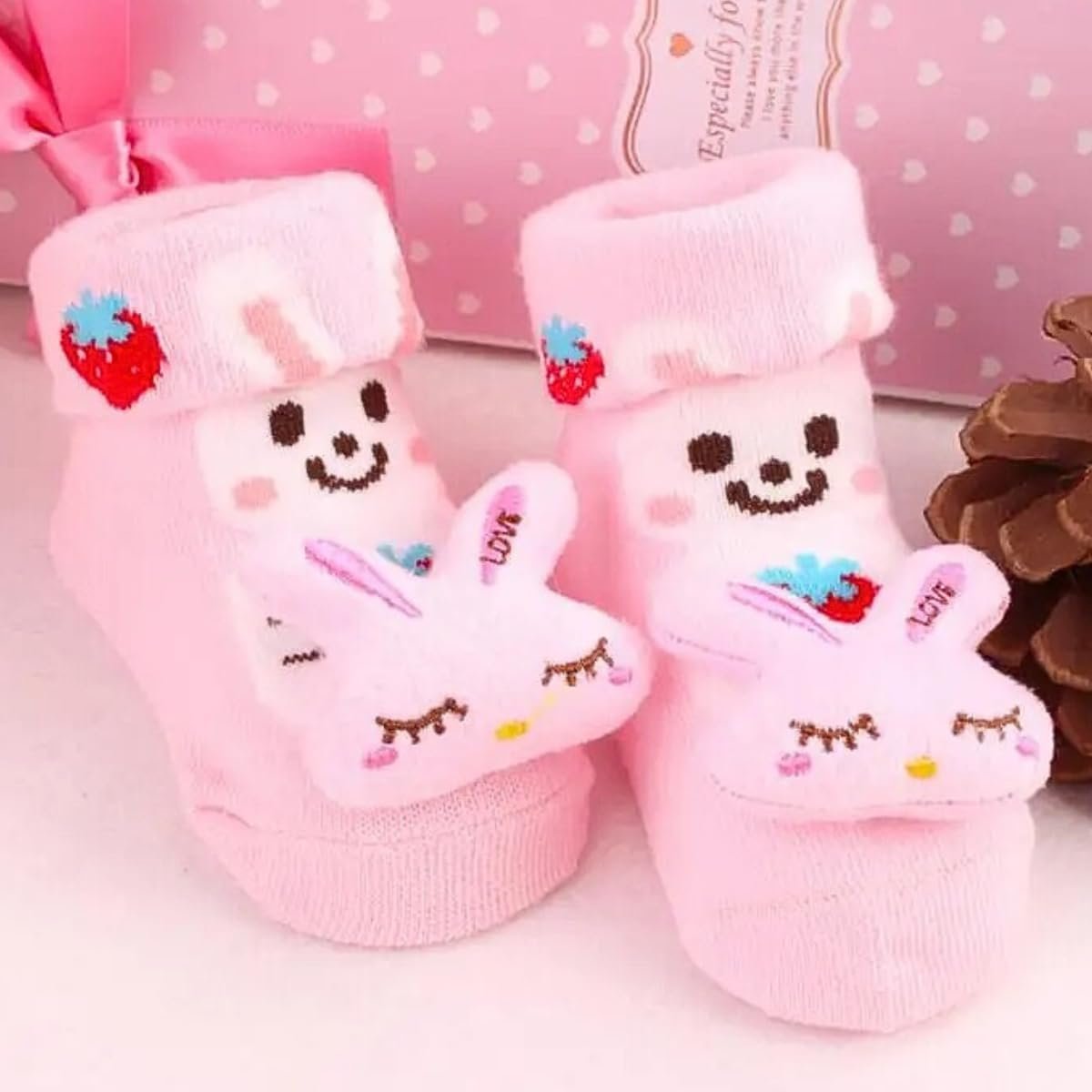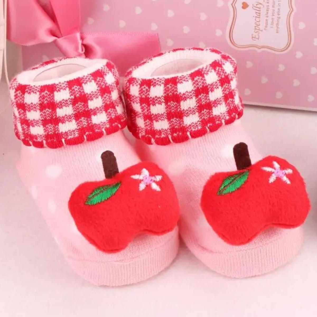Kit 4 Pares Meias Bebê com Chocalho Pelúcia 3D Algodão Menino Menina Conforto Respirável 0 a 24 Meses Uso Diário