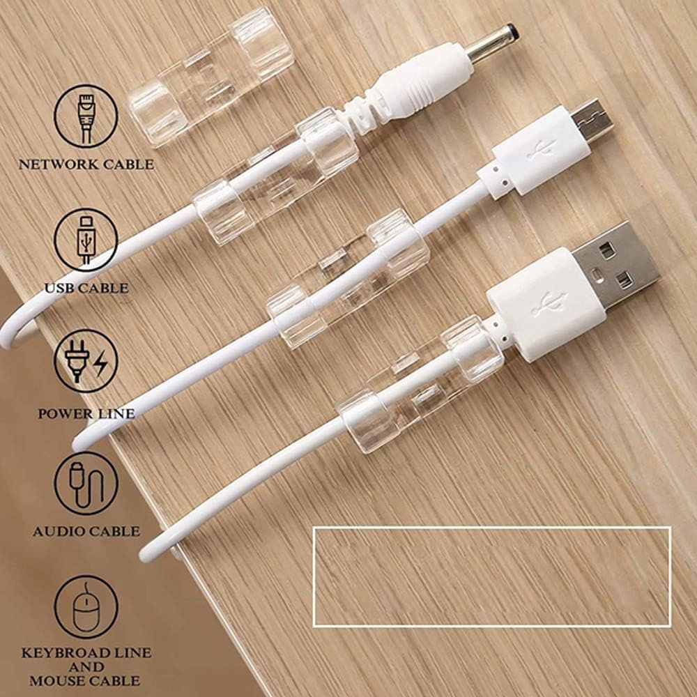 Kit 40 Organizadores de Fios Transparentes – Clipes de Cabo com Adesivo Forte, Suporte de Arame Autoadesivo para Carro, Casa e Escritório – Fixação Resistente para Cabos