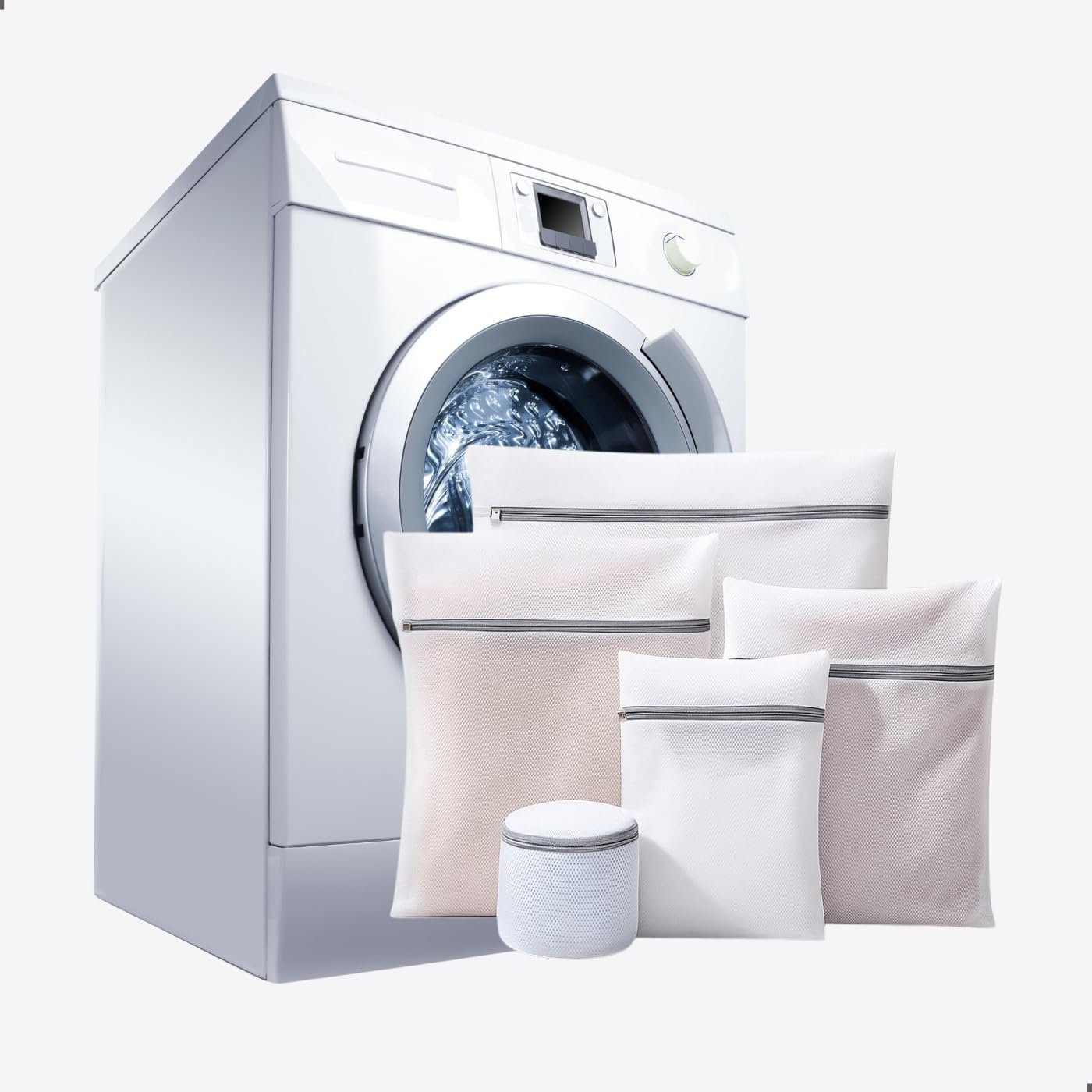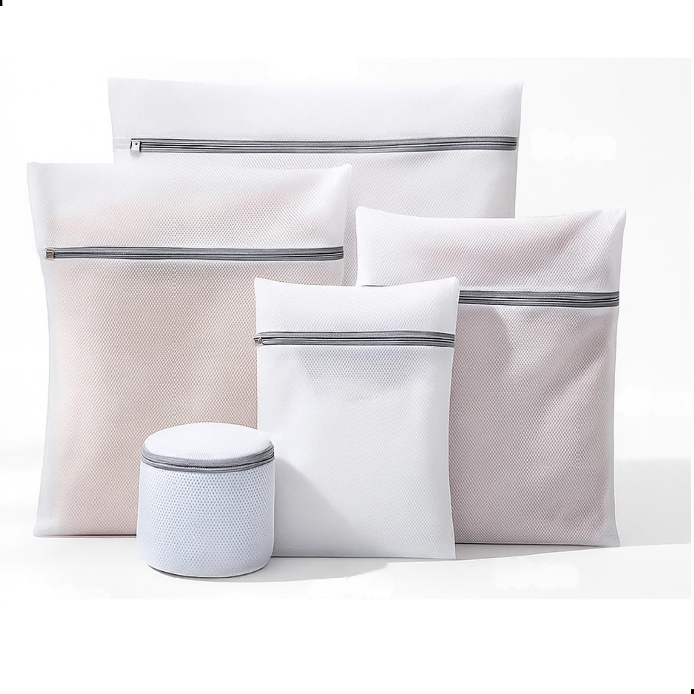 Kit 5 Sacos Protetores para Lavar Roupas | Cores Sortidas Cinza ou Rosa| Evita Bolinhas, Rasgos e Desgaste | Zíper Reforçado | Ideal para Peças Delicadas e Roupas Íntimas | Branco Premium