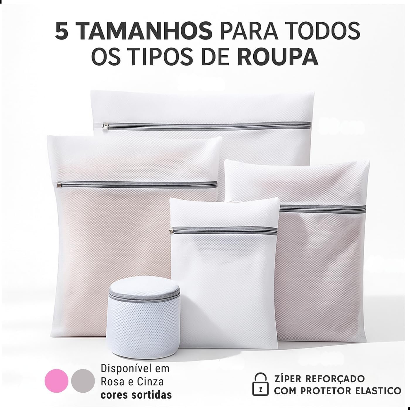 Kit 5 Sacos Protetores para Lavar Roupas | Cores Sortidas Cinza ou Rosa| Evita Bolinhas, Rasgos e Desgaste | Zíper Reforçado | Ideal para Peças Delicadas e Roupas Íntimas | Branco PremiumKit 5 Sacos Protetores para Lavar Roupas | Cores Sortidas Cinza ou Rosa| Evita Bolinhas, Rasgos e Desgaste | Zíper Reforçado | Ideal para Peças Delicadas e Roupas Íntimas | Branco Premium