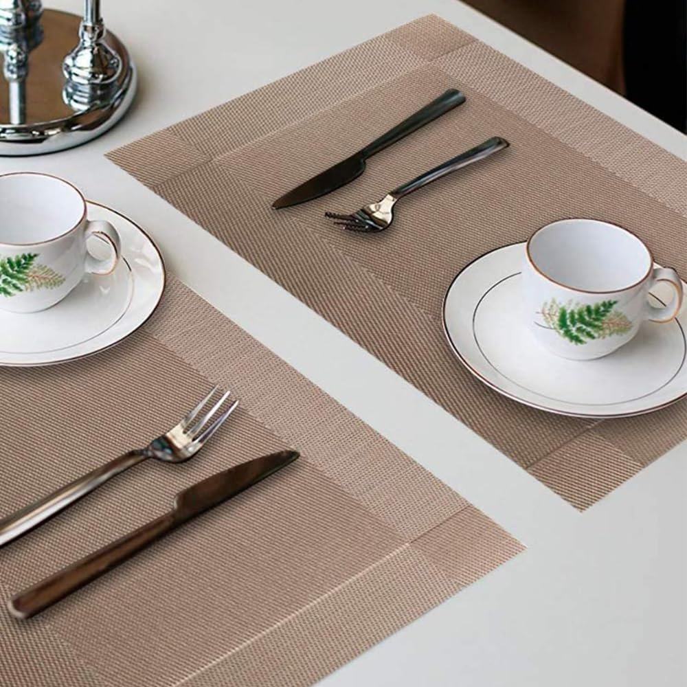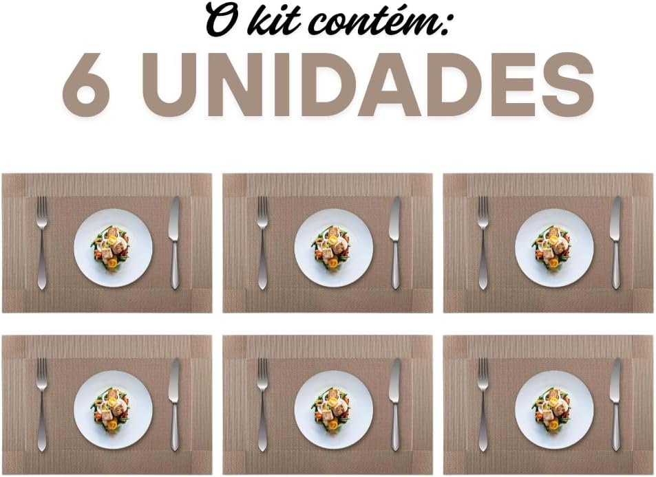 Kit 6 Peças Jogo Americano Retangular – Sousplat para Mesa Posta – Jogo Americano Elegante para Jantar, Almoço e Café – Lavável e Resistente – Shop100 (Marrom Claro)