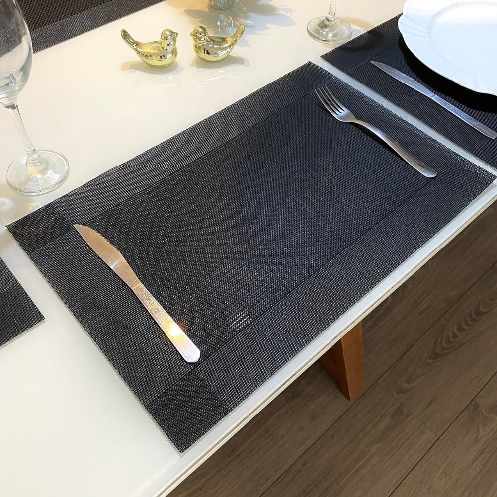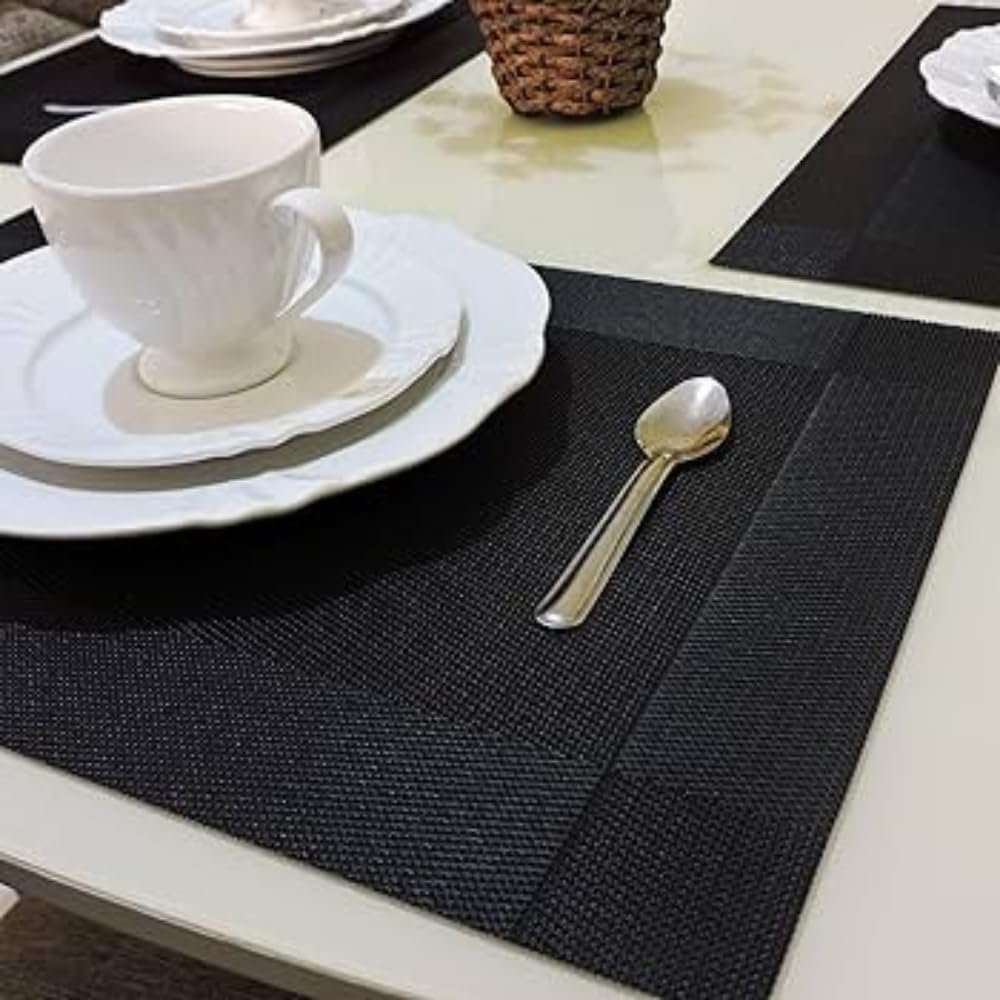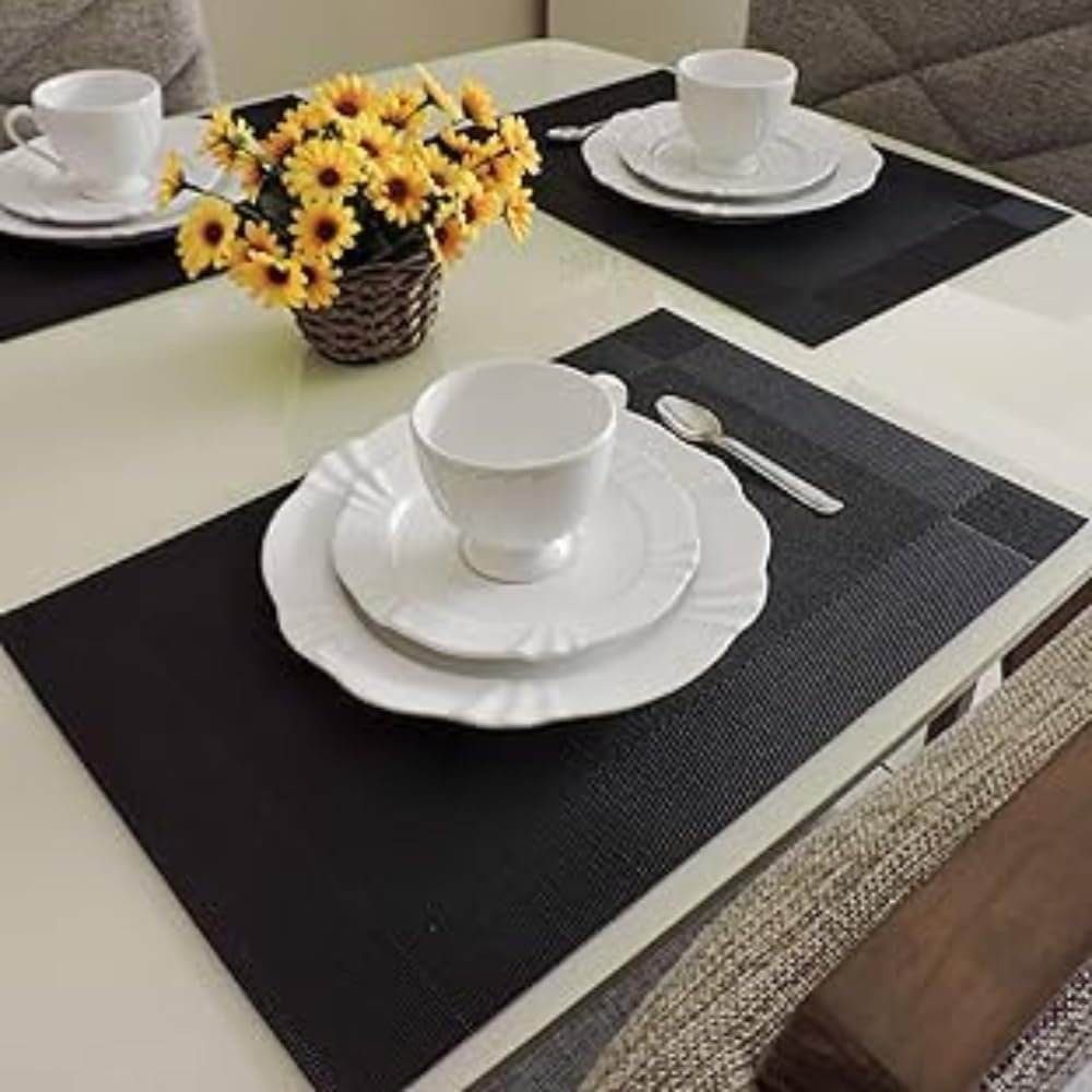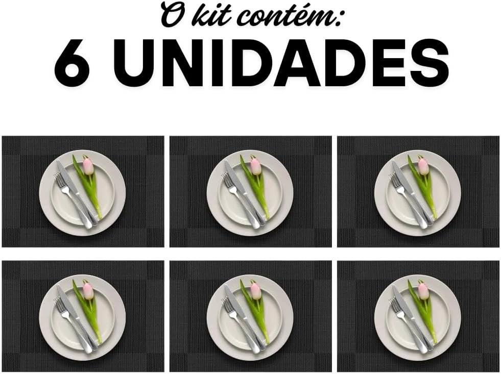 Kit 6 Peças Jogo Americano Retangular – Sousplat para Mesa Posta – Jogo Americano Elegante para Jantar, Almoço e Café – Lavável e Resistente – Shop100 (Preto)